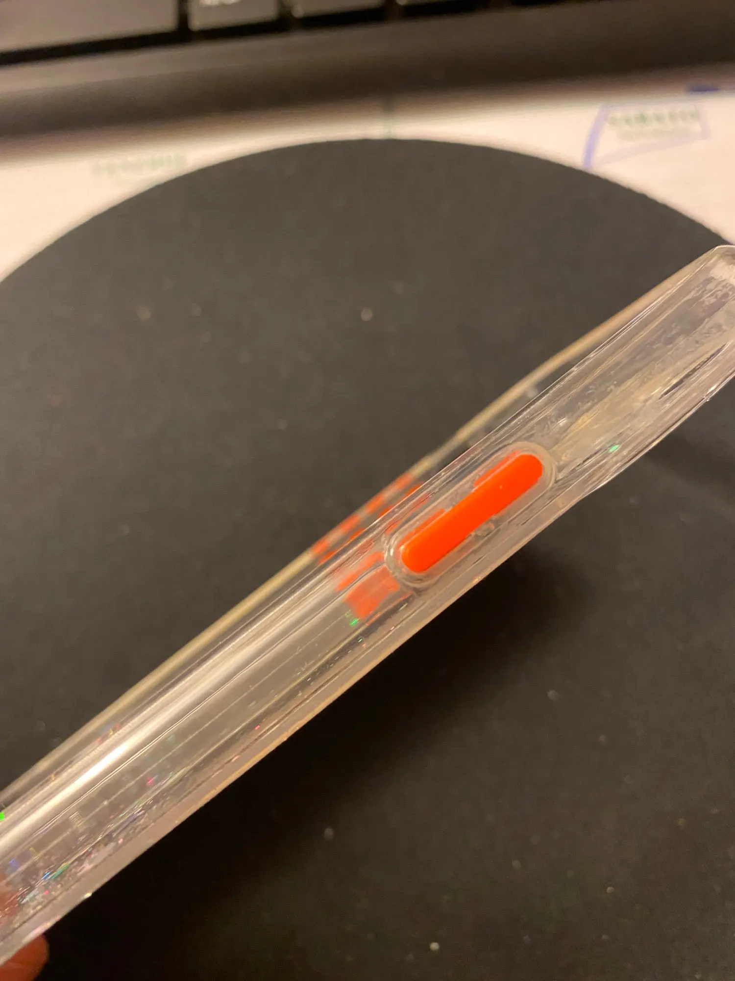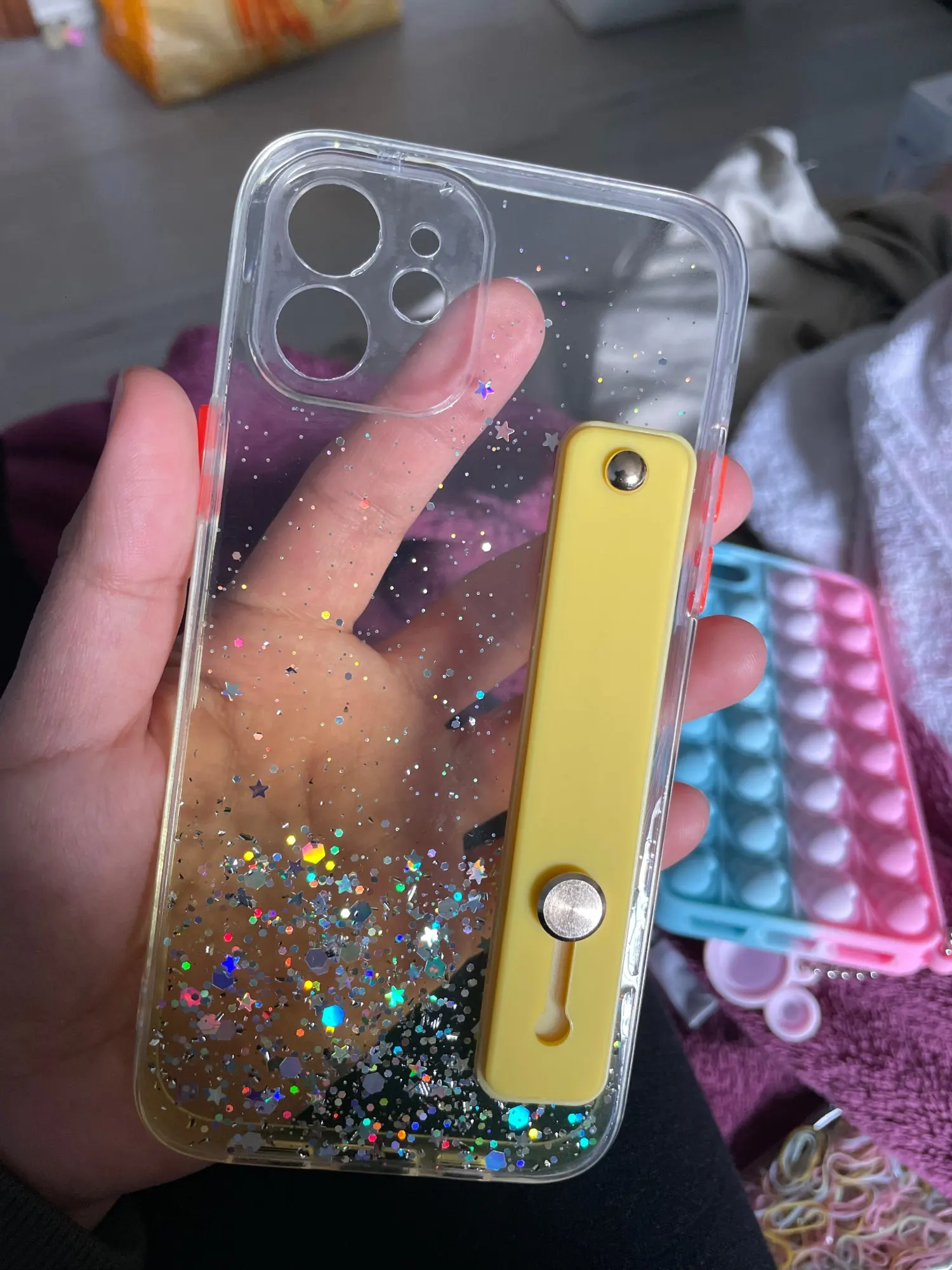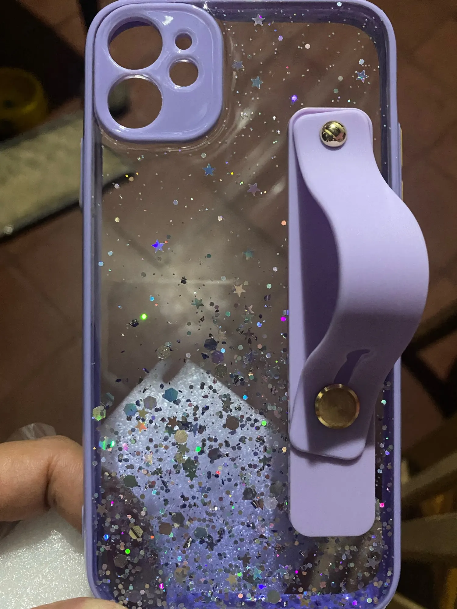 Хороший чехол, но держатель слишком маленький и не совсем удобный. В прозрачной части впечатан когда то живой комар темного цвета и среди блёсток теперь парк юрского периода