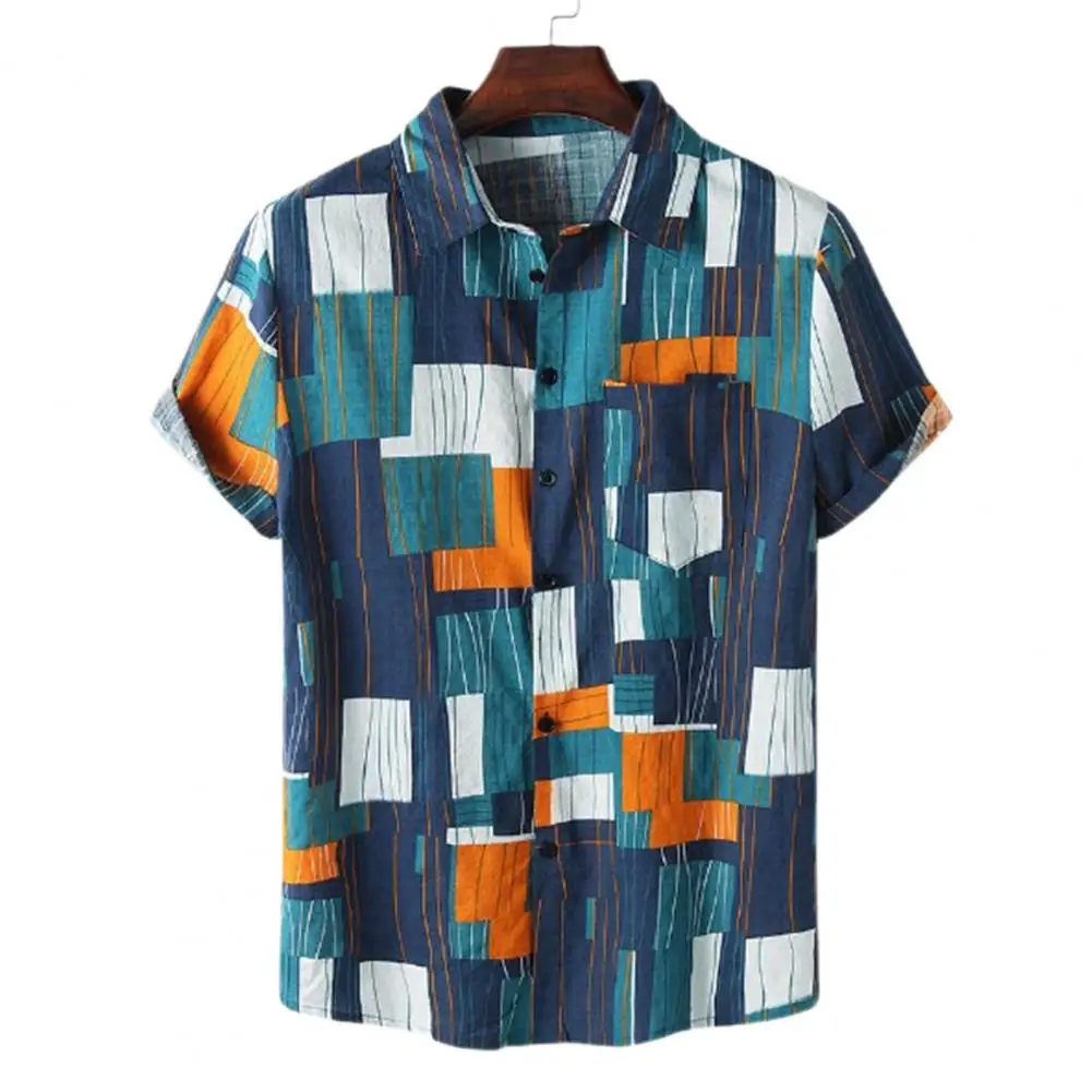 Мужская рубашка в клетку, с коротким рукавом и отложным воротником
