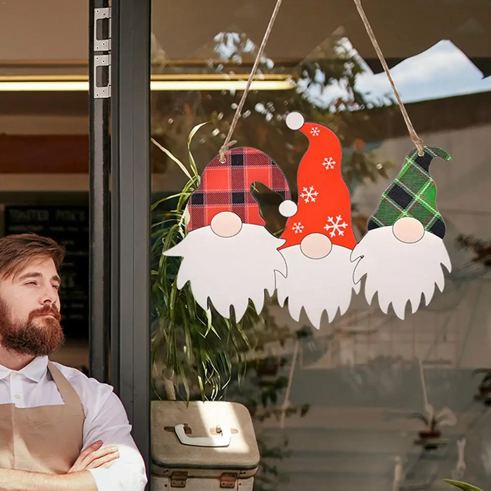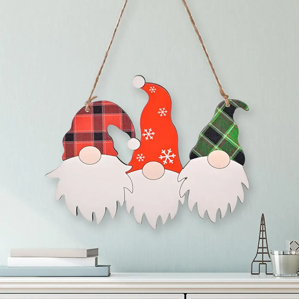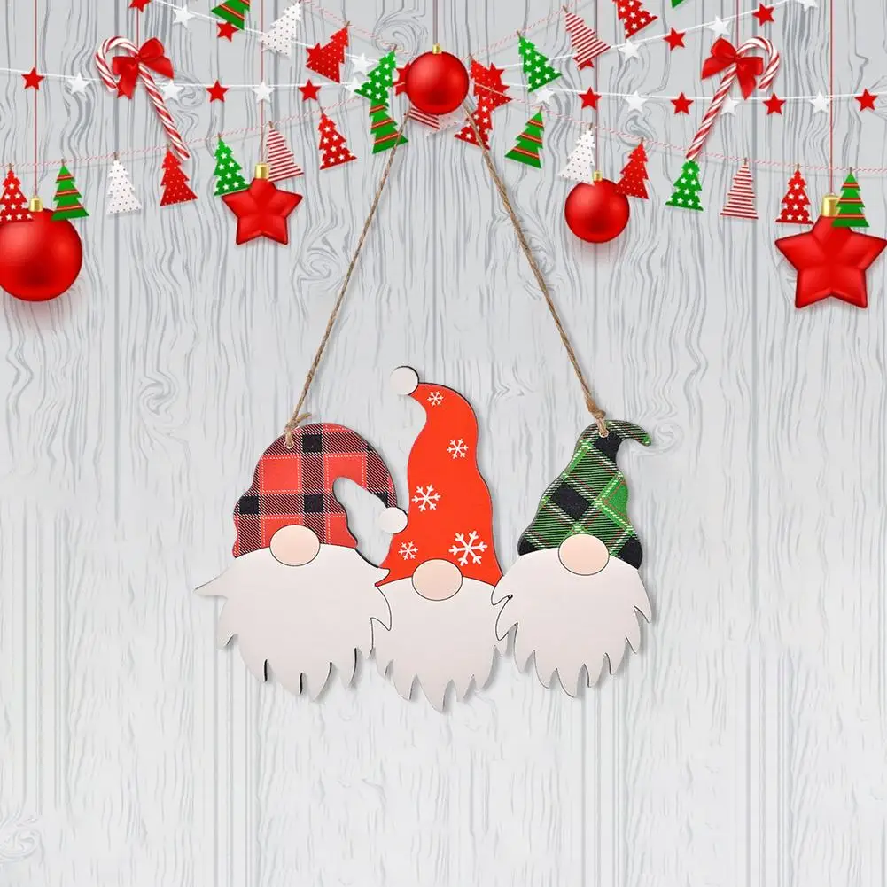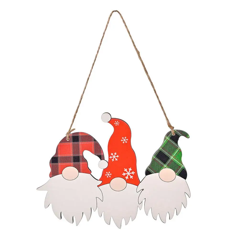 Рождественский гном, деревянная подвесная дверь, подвесная безлицевая кукла, знак орнамент с рождественской елкой, новый год 2022, украшение для дома