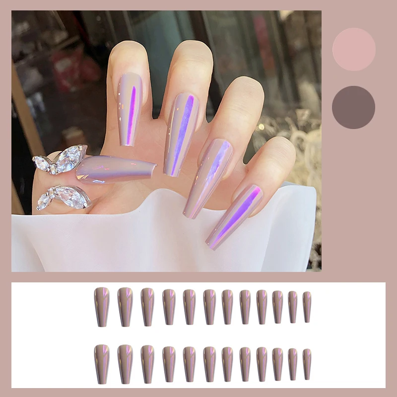 Накладные ногти Aurora Purple Ballerina, глянцевые голографические накладные ногти, накладные ногти, полностью покрытые, 24 шт.