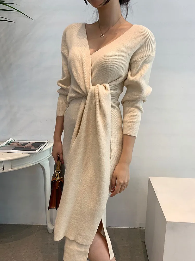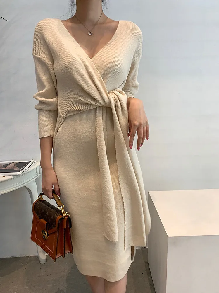 Теплые вязаные платья-джемперы в Корейском стиле, плотные однотонные платья, зима 2021, вязаный пуловер, женское платье абрикосового и серого цветов