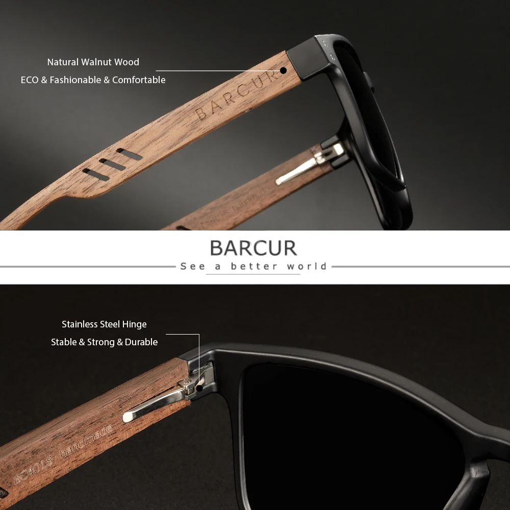 Солнцезащитные очки BARCUR, брендовые деревянные солнцезащитные очк...