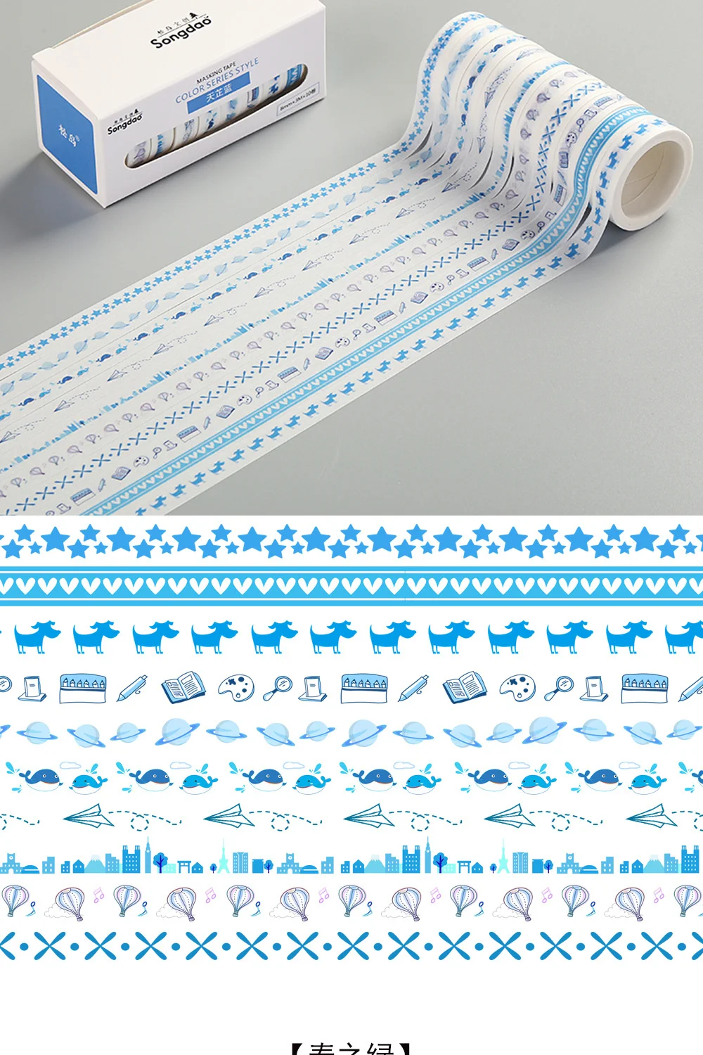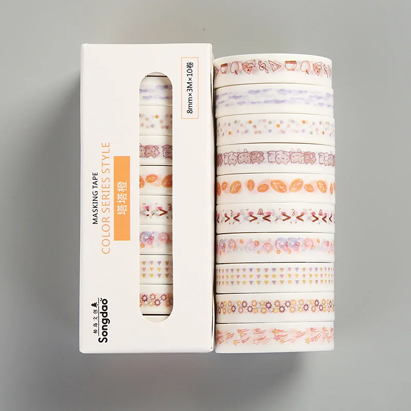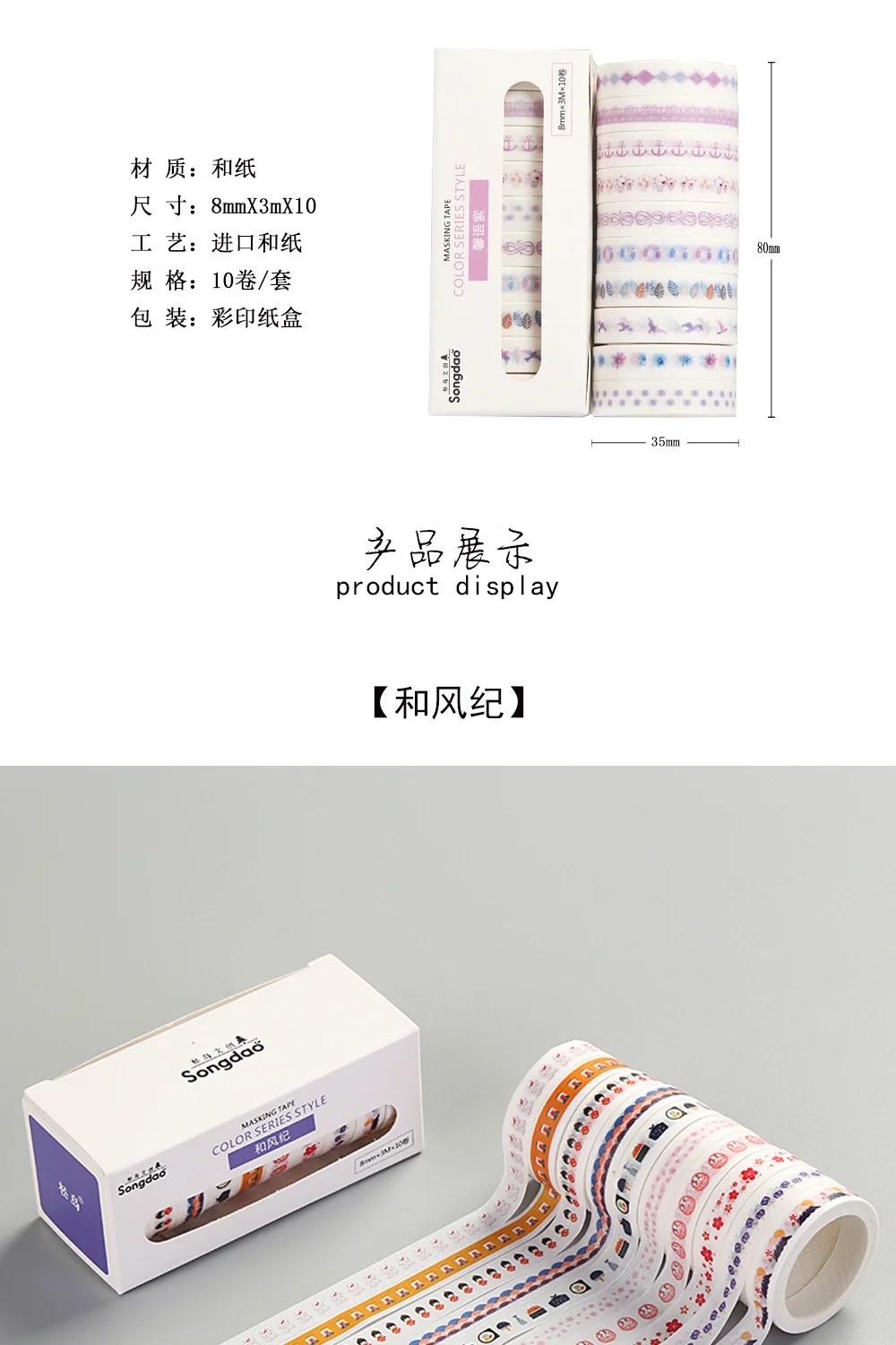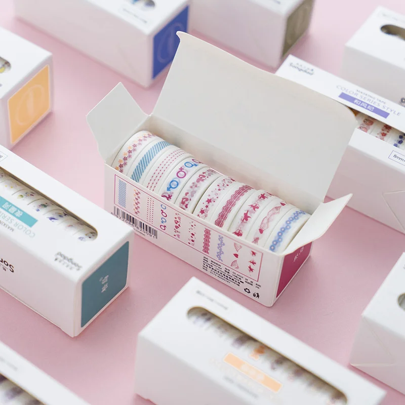 10 рулонов в коробке, базовый цвет, набор ленты Wasi, украшение для дневника, отрывная наклейка, материал для рук, учетных записей канцелярские принадлежности для школьников, студентов