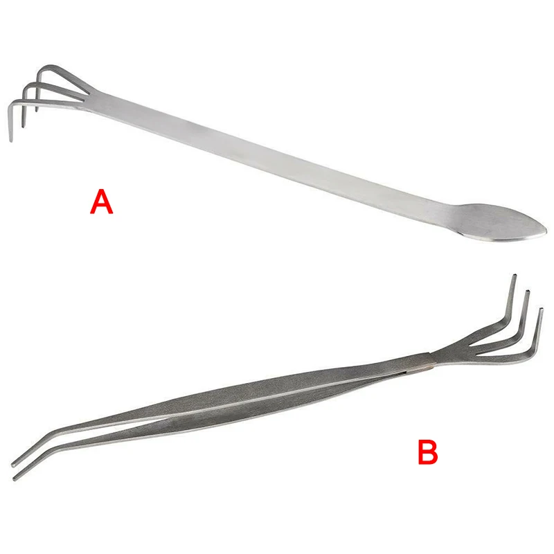 3. 2 в 1 Многофункциональный инструмент бонсай: корень грабли и шпатель/корень грабли и пинцет.