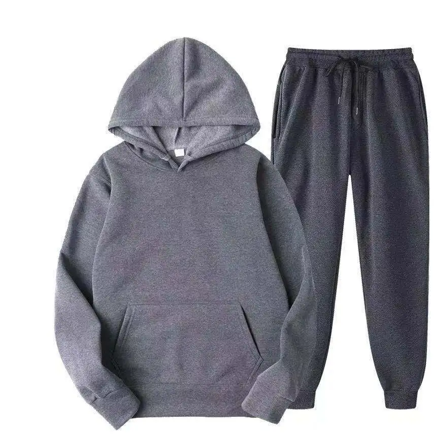 Спортивный костюм мужской из двух предметов, Свитшот и штаны большого размера, однотонная спортивная одежда, осень-зима