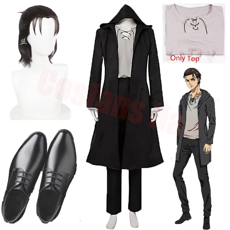 Косплей из атаки на Титанов, Эрен Jaeger, косплей костюмы, униформа финального сезона, парики, черное пальто, аниме, для женщин и мужчин, карнавал на Хэллоуин