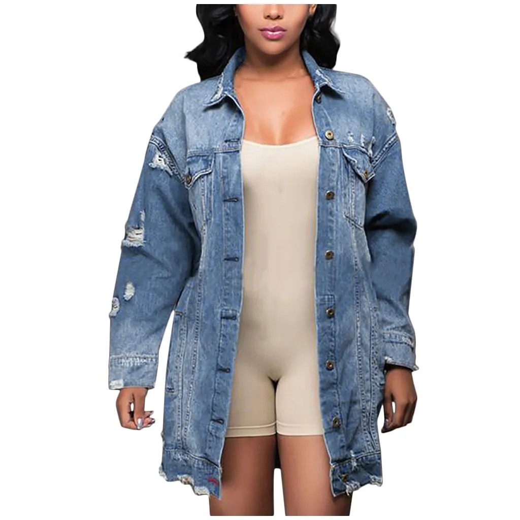 Женская джинсовая куртка в стиле ретро, рваная джинсовая куртка, св...