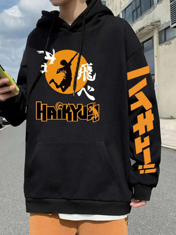 Японские Аниме Haikyuu толстовки мужские забавные Karasuno Fly Высокая уличная одежда с графическим принтом пуловер зимние теплые модные толстовки унисекс