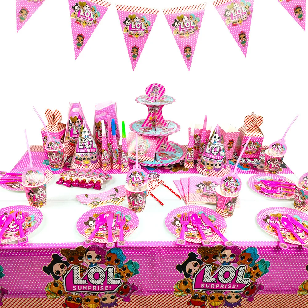 Мультфильм кукла день рождения товары для вечеринок скатерть бумажная тарелка бумажное полотенце посуда Вымпел Баннер набор