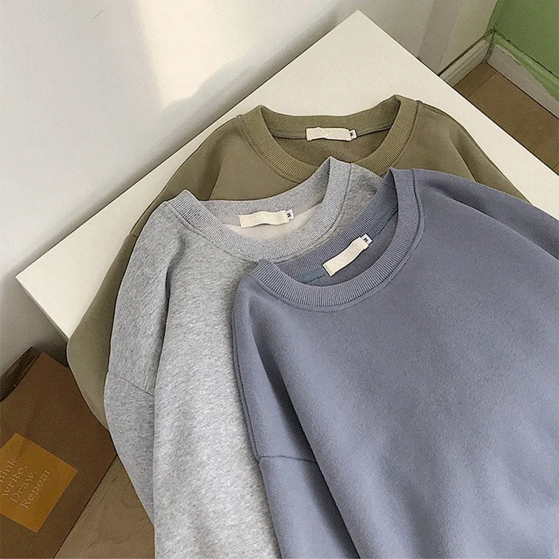 Толстый свитшот для мужчин и женщин, модный однотонный пуловер в Корейском стиле, флисовый джемпер с круглым вырезом, Парные толстовки большого размера, dreame, весна-осень