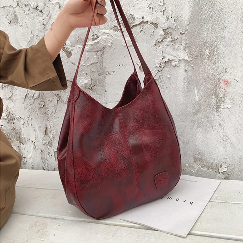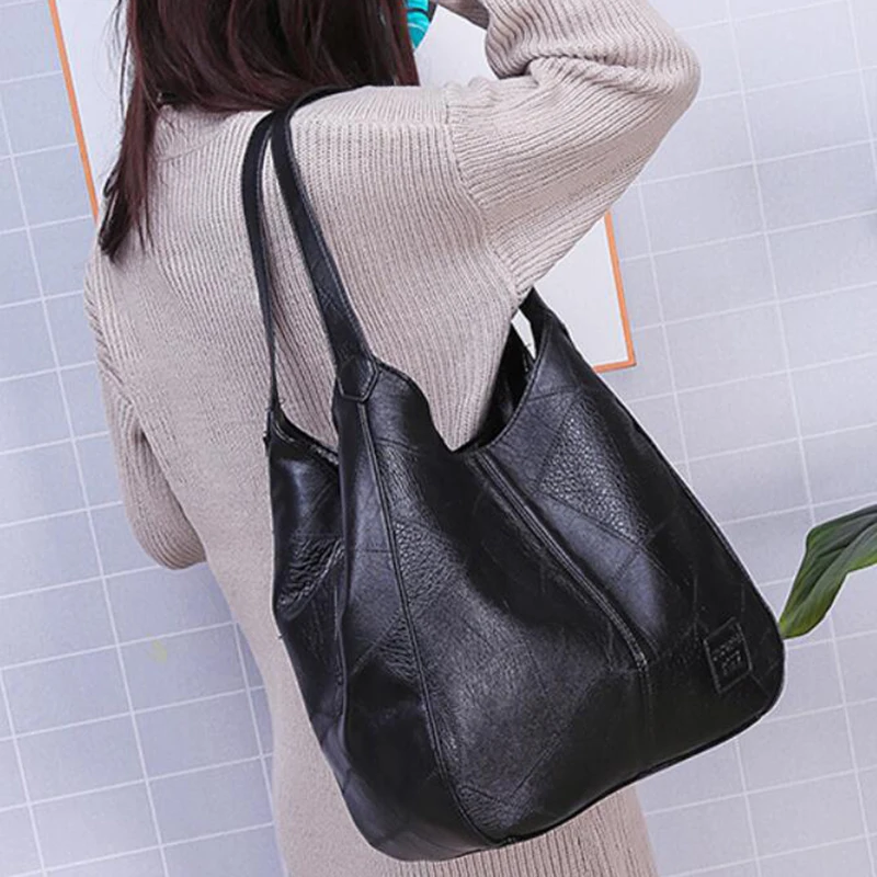 Винтажные вместительные сумки через плечо для женщин, дамские сумочки из искусственной кожи в стиле ретро, модные однотонные тоуты