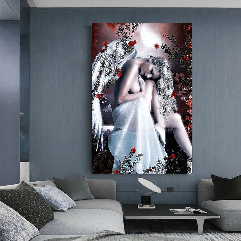 Алмазная живопись 5D "Ангел красавица", полная квадратнаякруглая др...