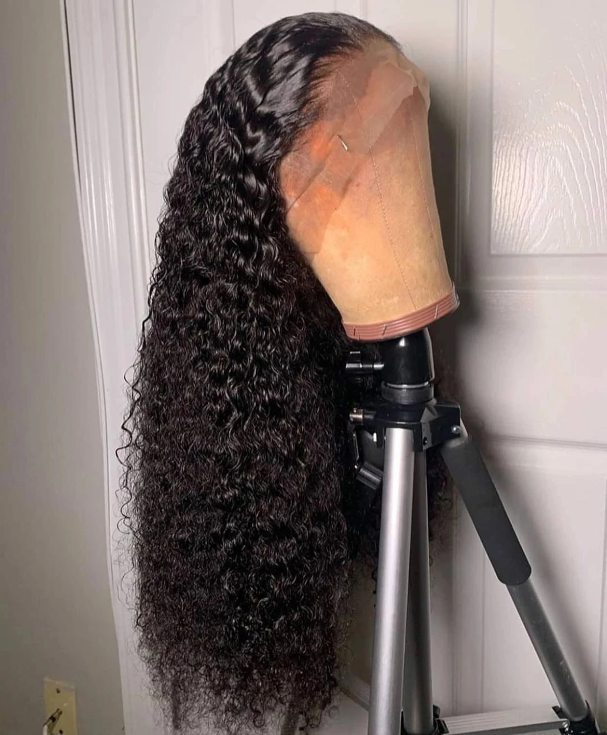 Парик черный кудрявый из синтетического кружева спереди, термостойк...