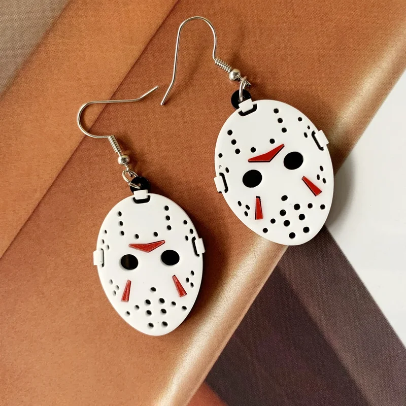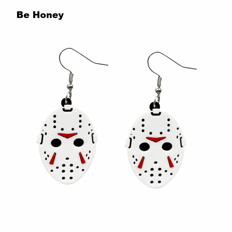 2021 вечерние ская маска самурая для Хэллоуина, акриловые Висячие серьги, маска Джейсона пятничного убийцы, ажурный кулон, модные ювелирные изделия