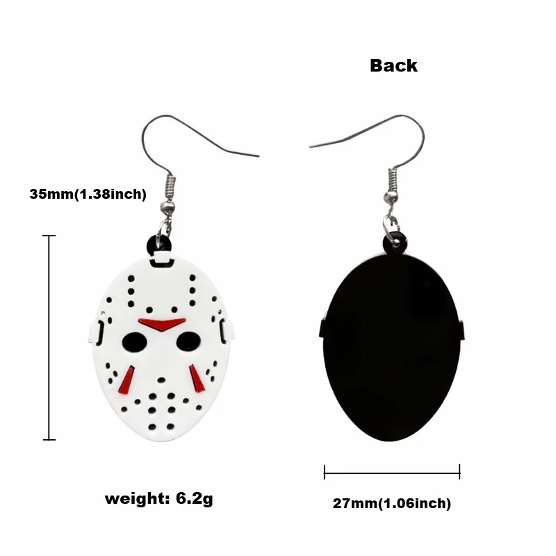 2021 вечерние японские Самурайские маски, акриловые висячие серьги, Джейсон пятница, маска-убийца, Полые Подвески, модные ювелирные изделияМатериал: акрилРазмеры: 3,5*2,7 смPS: Мы можем настроить любой дизайн и цвет (для настройки, пожалуйста, свяжитесь с нашей службой поддержки клиентов)