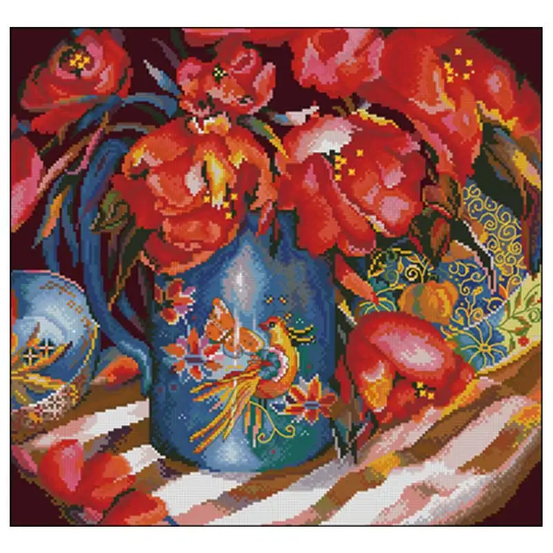 Наборы для вышивки крестом, синий цветочный горшок, 11CT 14CT 18CT