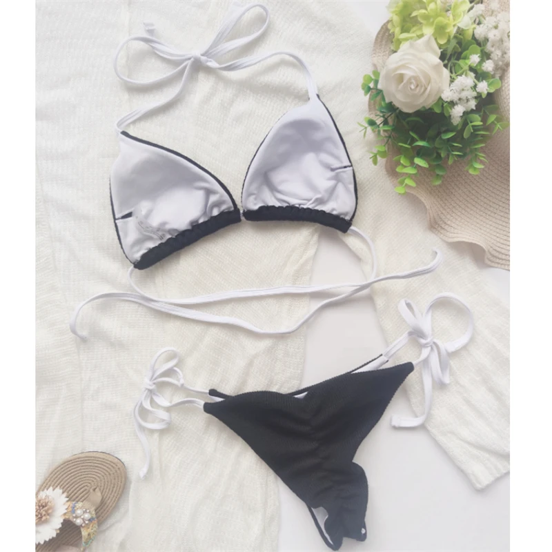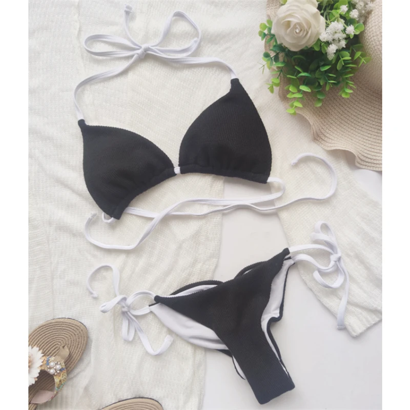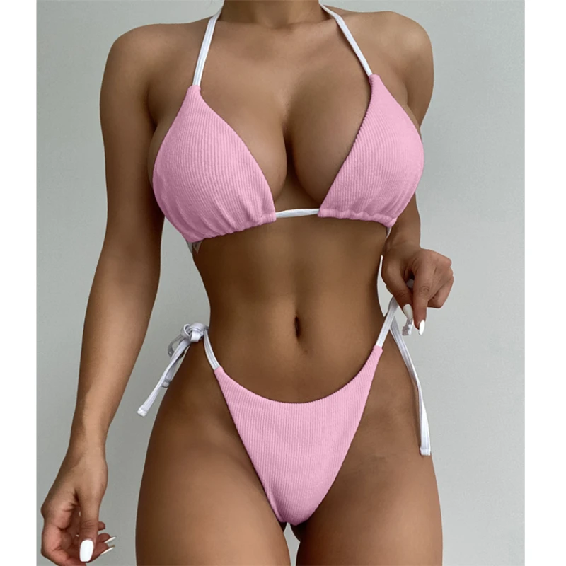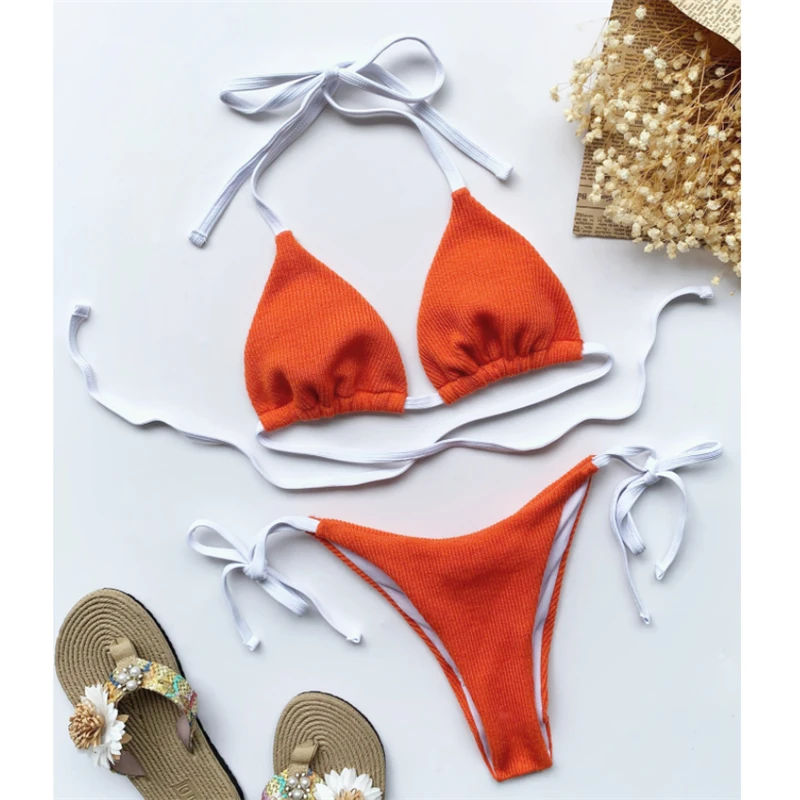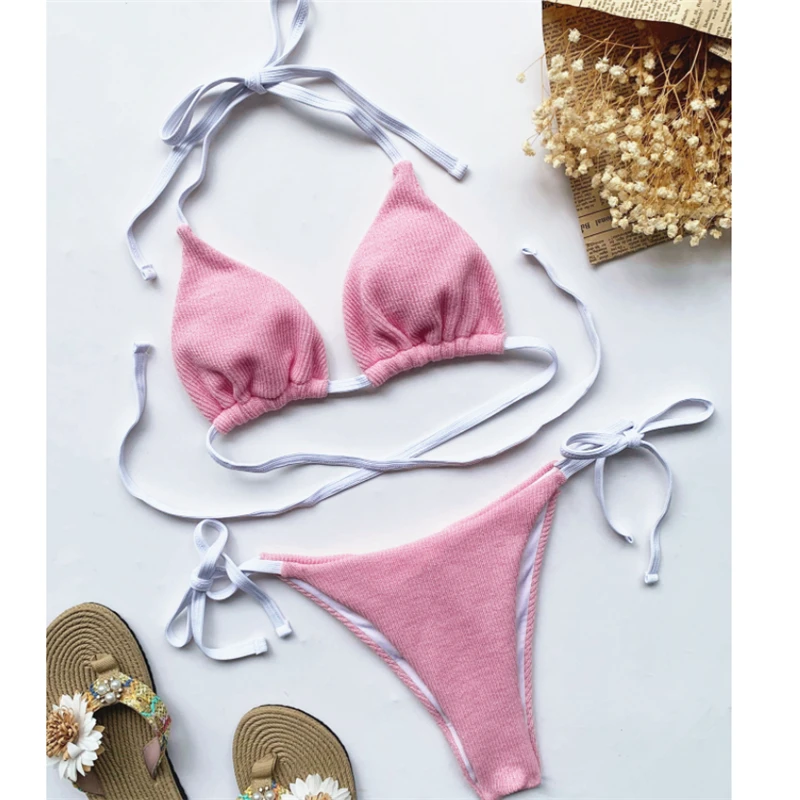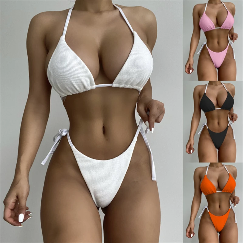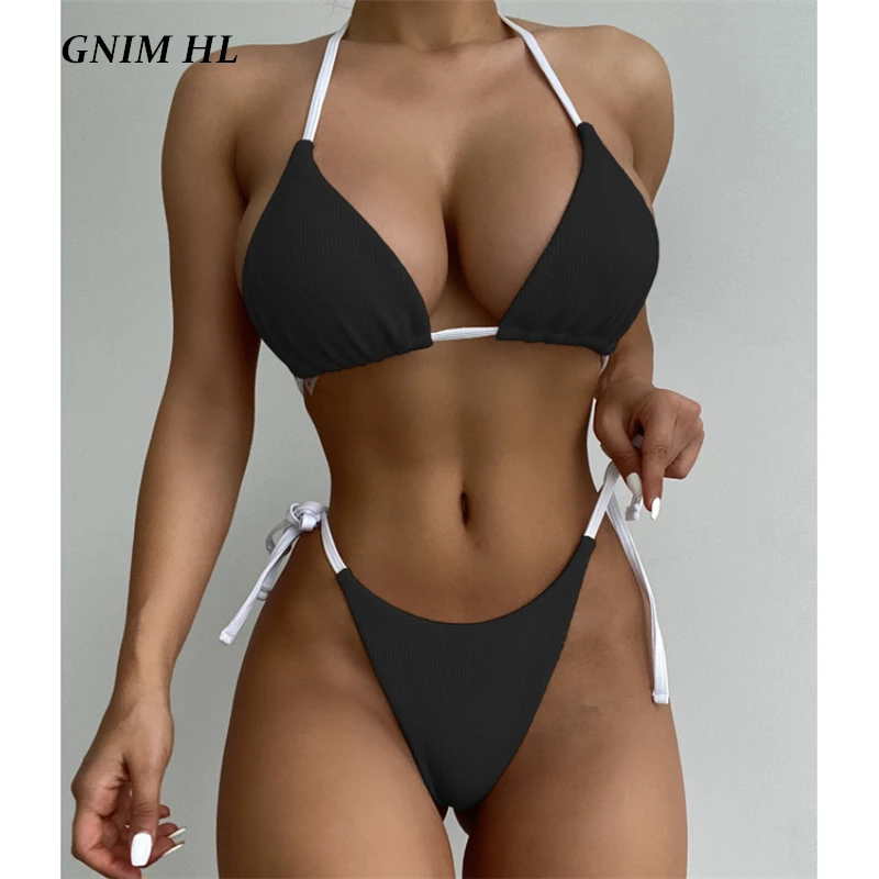 Сексуальный бандажный однотонный купальник GNIM, Женский треугольный комплект бикини из 2 предметов, лето 2021, купальник с открытой спиной, женский спортивный купальный костюм