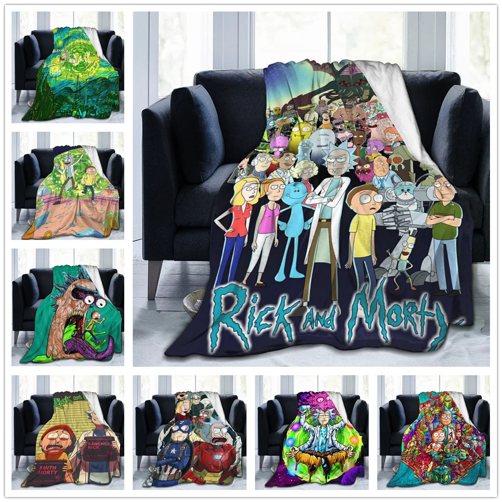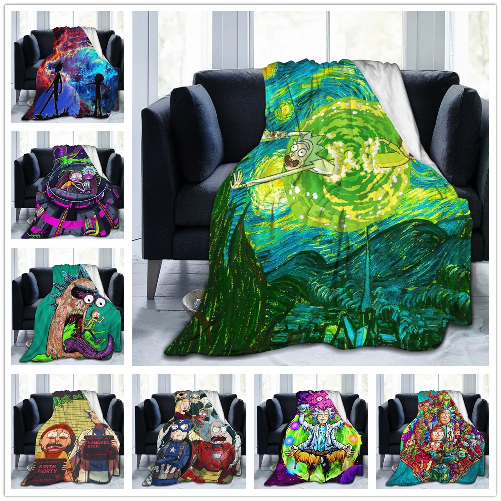 3D одеяло Rick Morti, Фланелевое покрывало для кровати, мягкое удобное покрывало для дивана, подарок, всесезонное теплое одеяло для гостинойспальниофиса
