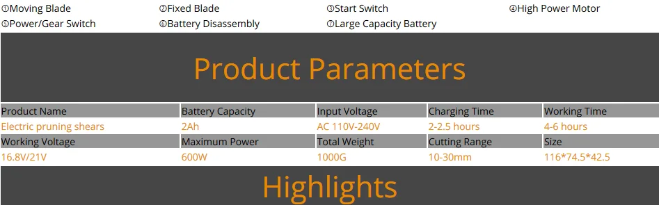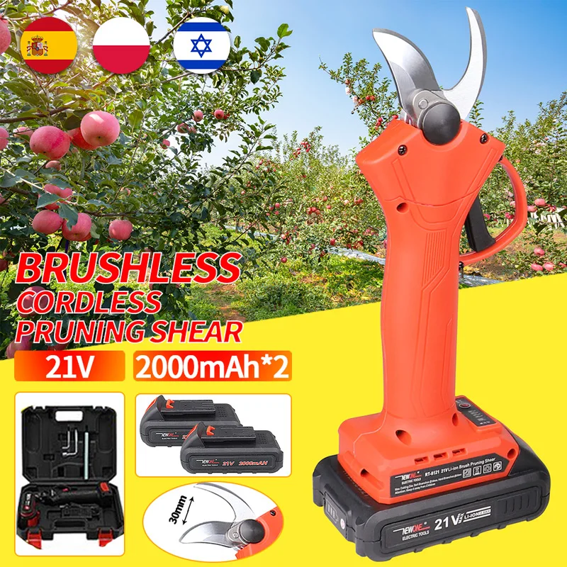 Аккумулятор 21V 2.0A Электрические секаторы Профессиональные беспроводные секаторы Секатор Триммер Аккумуляторная батарея для фруктовых деревьев Orchar Инструмент для резки живой изгороди с пластиковым футляром NEWONE