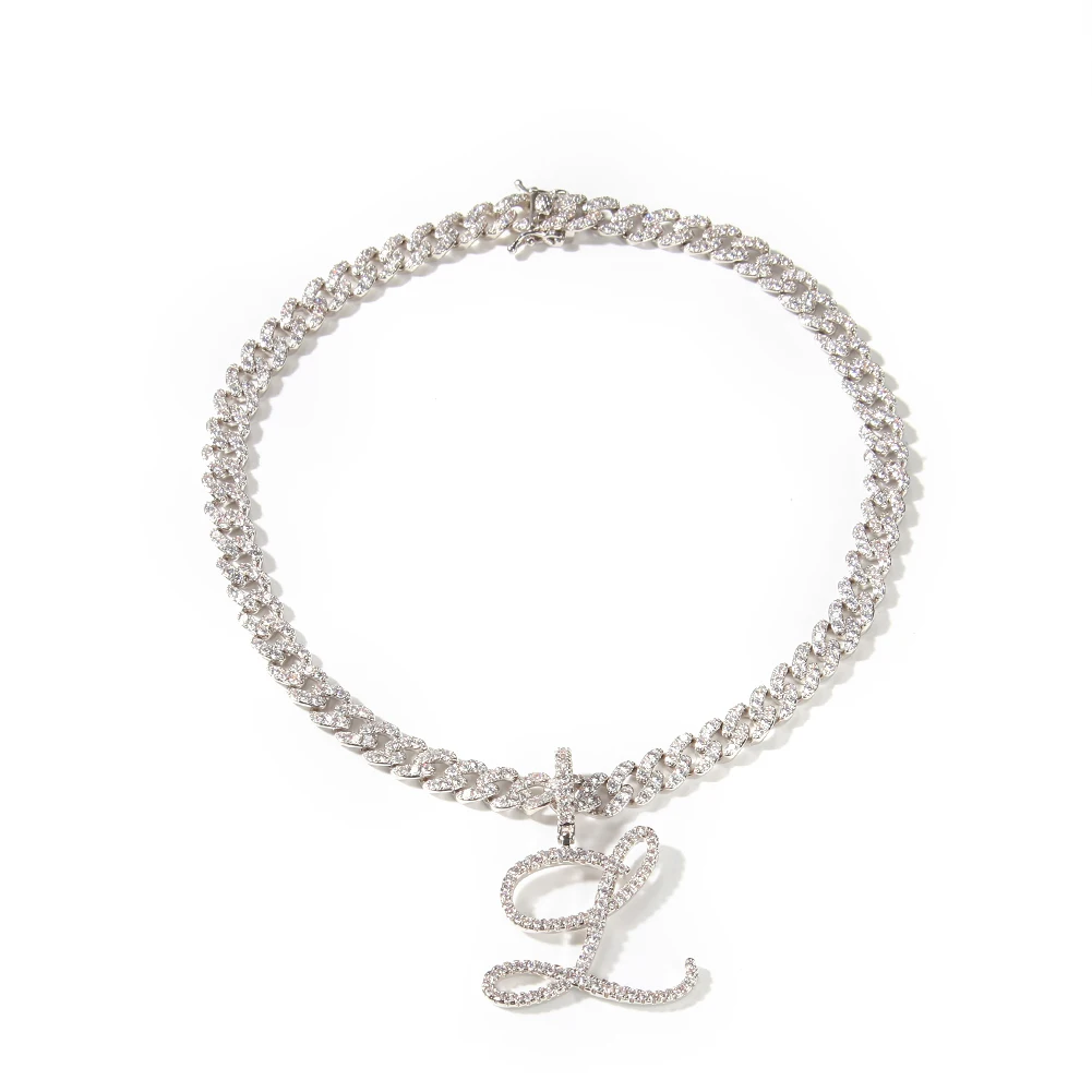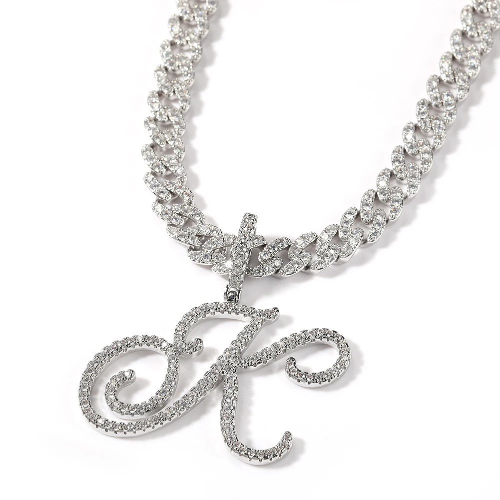Король BLING, курсивные буквы с 9 мм кубинским кисть для цепи фианитом, ожерелье с интимным именем, шарм, ювелирные изделия в стиле хип-хоп