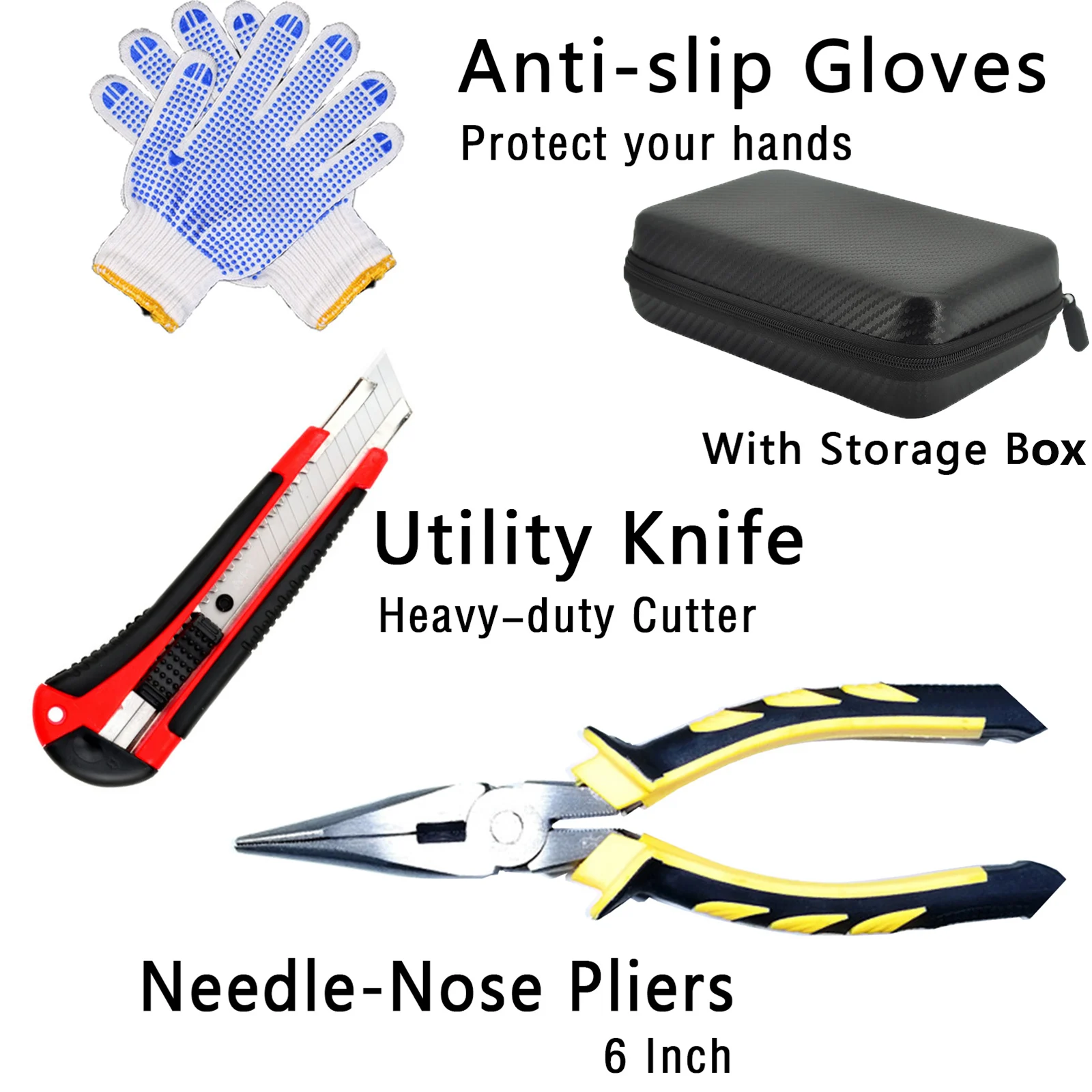 1 шт. инструмент для расчистки.1 Игла инструмент.5 шт. ремонтные полоски.1 шт нержавеющей стальной универсальный нож1 шт. плоскогубцы для носа1 штука Аксессуар Коробка для хранения1 пара нескользящих перчаток