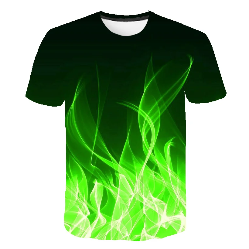 Детская футболка с коротким рукавом и 3D-принтом пламени для мальчиков и девочек, повседневная свободная и удобная футболка, топ размеров 4-14t, 2021