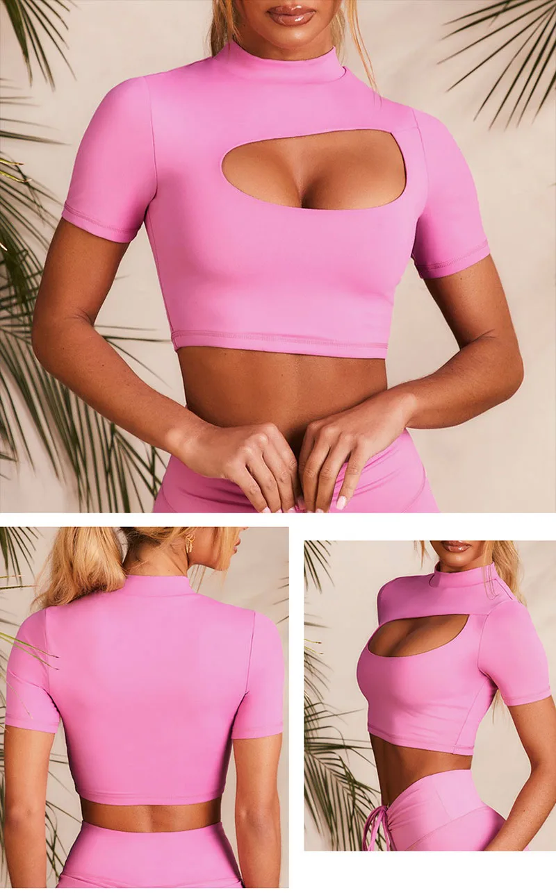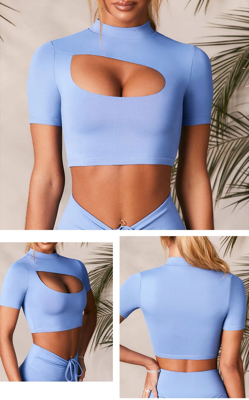 Женские Бесшовные комплекты для йоги с коротким рукавом, Спортивные...