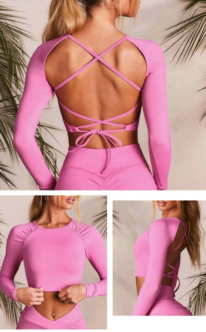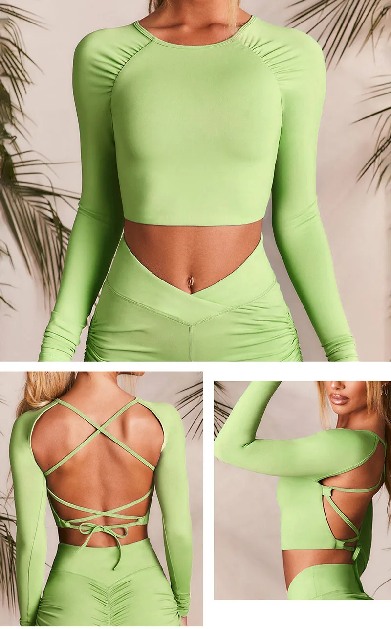 Сексуальный укороченный топ, женский спортивный бюстгальтер с длинным рукавом, рубашки для йоги, бесшовные шорты для йоги, женский укороченный топ пуш-ап, одежда для фитнеса, женские наряды