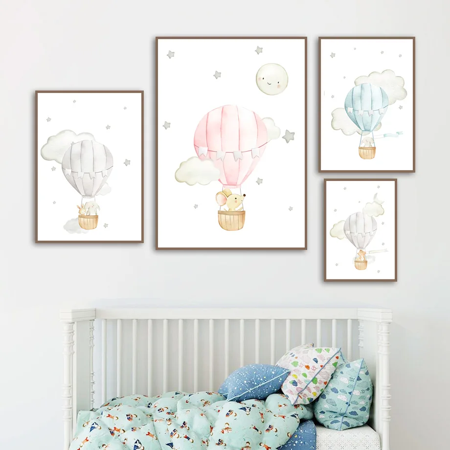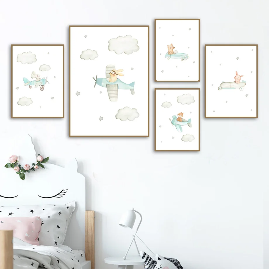 Настенная картина на холсте с изображением слона медведя кролика лисы воздушного шара самолета скандинавские постеры и принты настенные картины декор для детской комнаты
