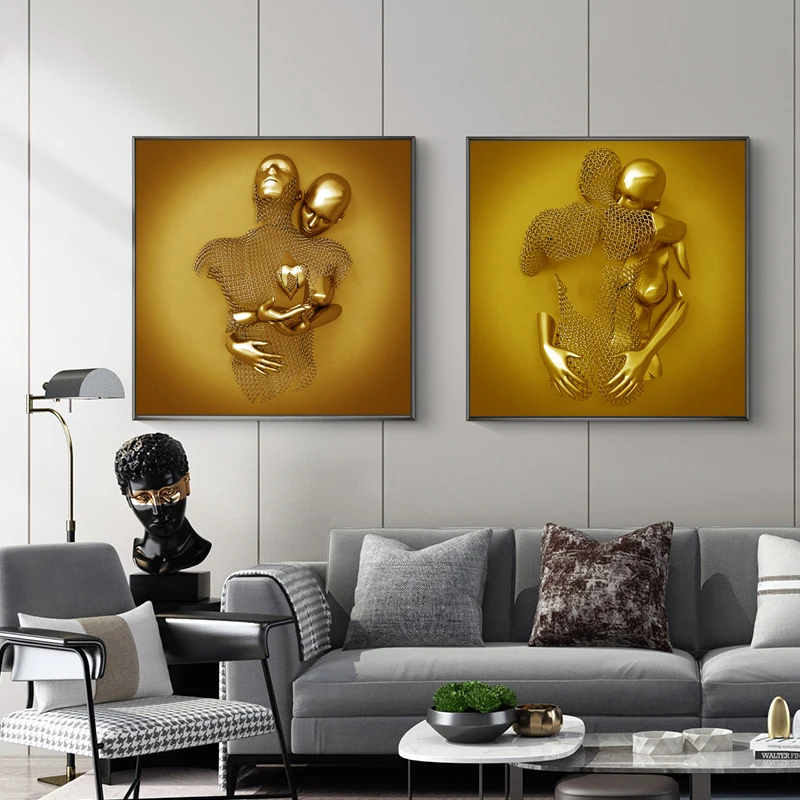 Металлическая фигурка, статуя, Картина на холсте, романтические абстрактные постеры и принты Gloden, современные картины для гостиной, интерьера, украшения