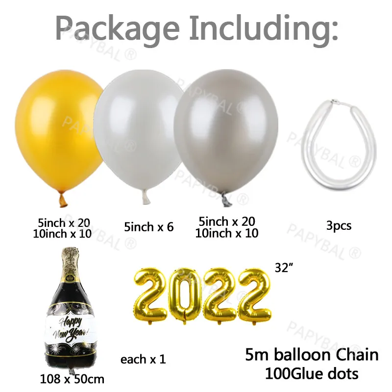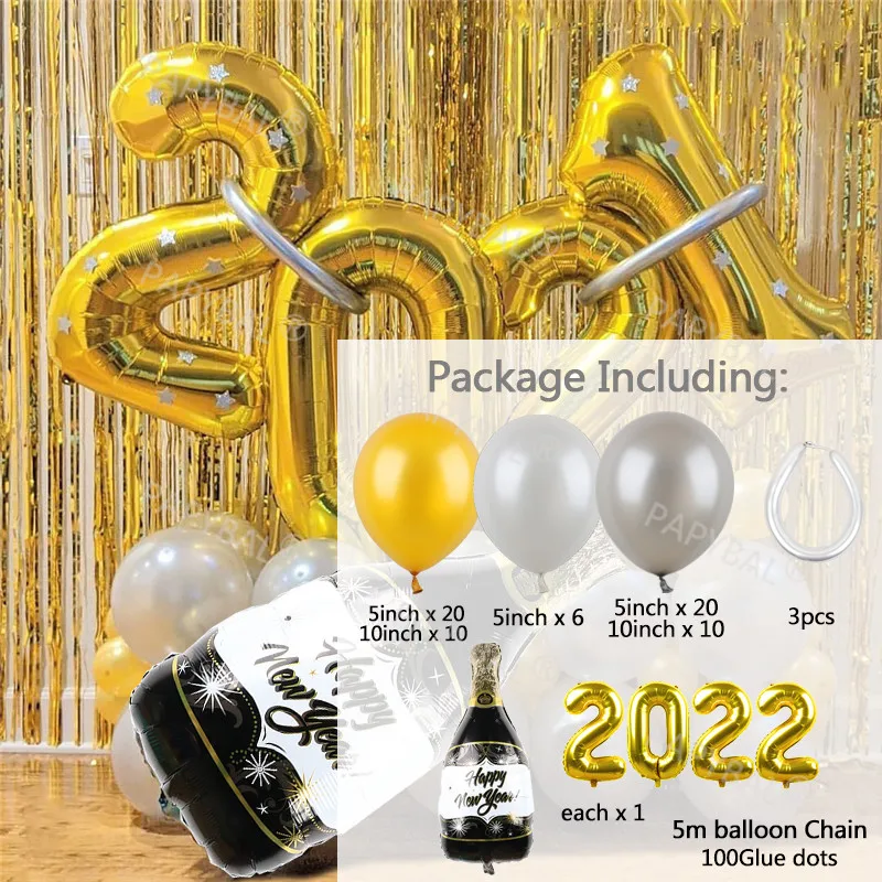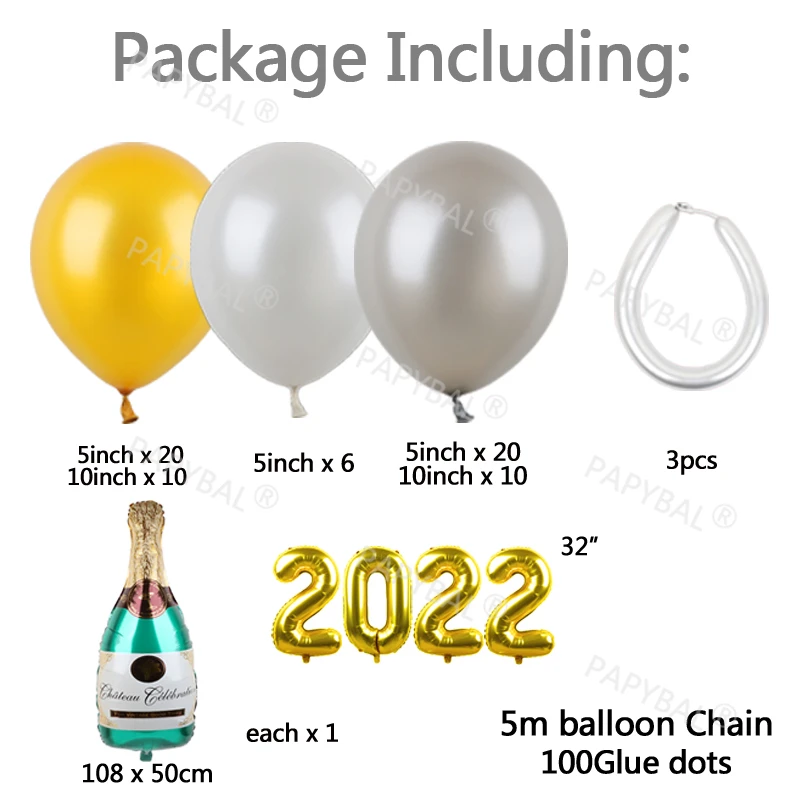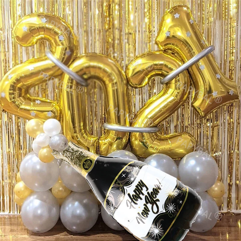 Набор фольгированных шаров, 76 шт., 2022, с новогодними цифрами, шары, гирлянда для празднования Рождества, цвета шампанского