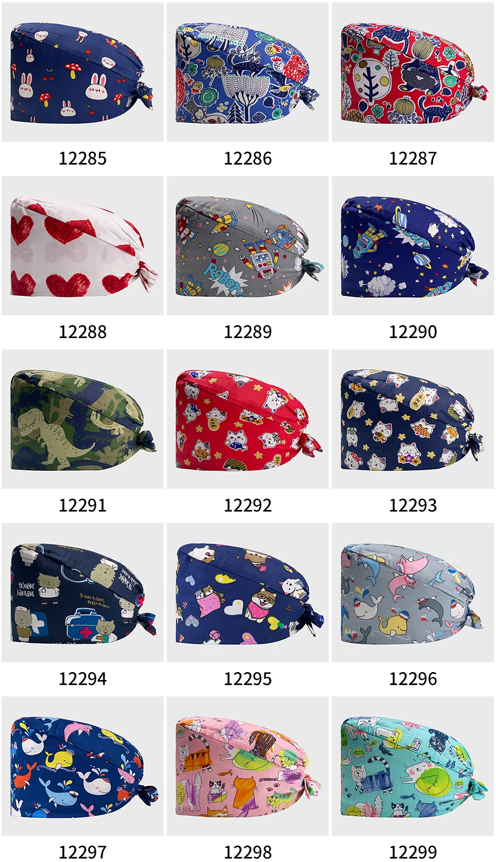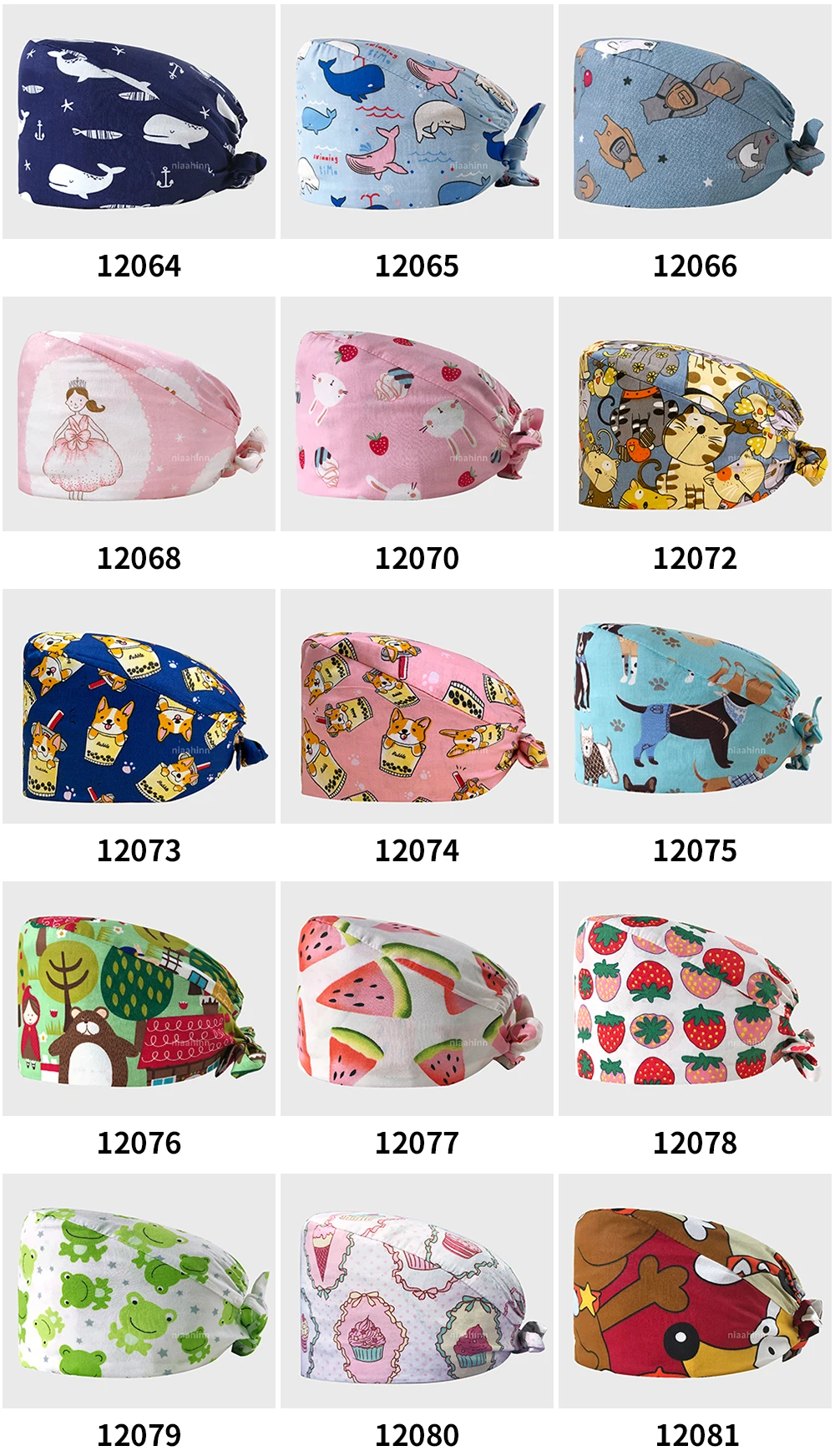 Шапка для медсестры с цветочным узором, регулируемая шапка с разным...
