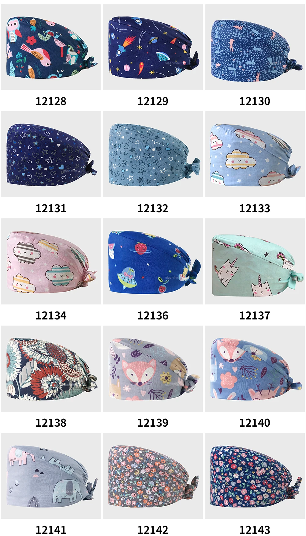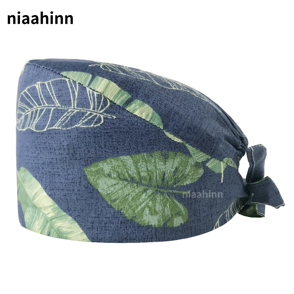 Врачебные головные уборы для ухода за домашними животными, больничные медицинские скрабы, головные уборы из 100% хлопка, впитывающие пот, лабораторная шапка с разноцветным цветочным принтом