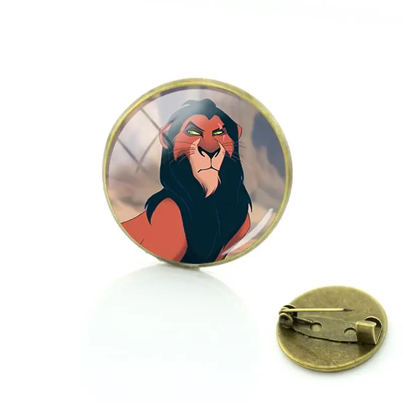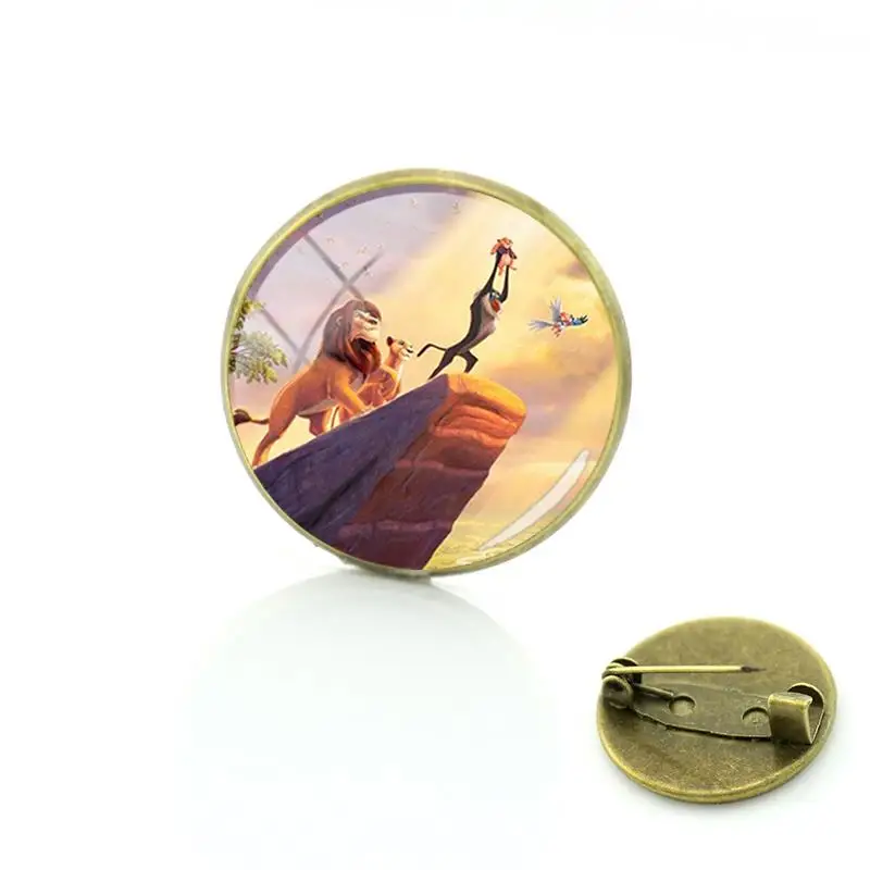 Классическая Брошь в виде короля льва из Диснея, значок, стеклянный кабошон, художественная брошь с изображением Симбы, стеклянный купол, булавка