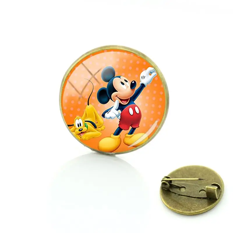 Брошь в стиле Диснея принцессы Микки, булавки, круглая стеклянная Ж...