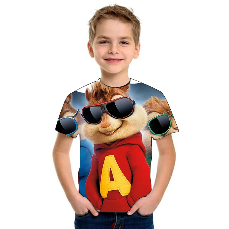 Футболка для мальчиков с забавным 3D-принтом из мультфильма чипмунк