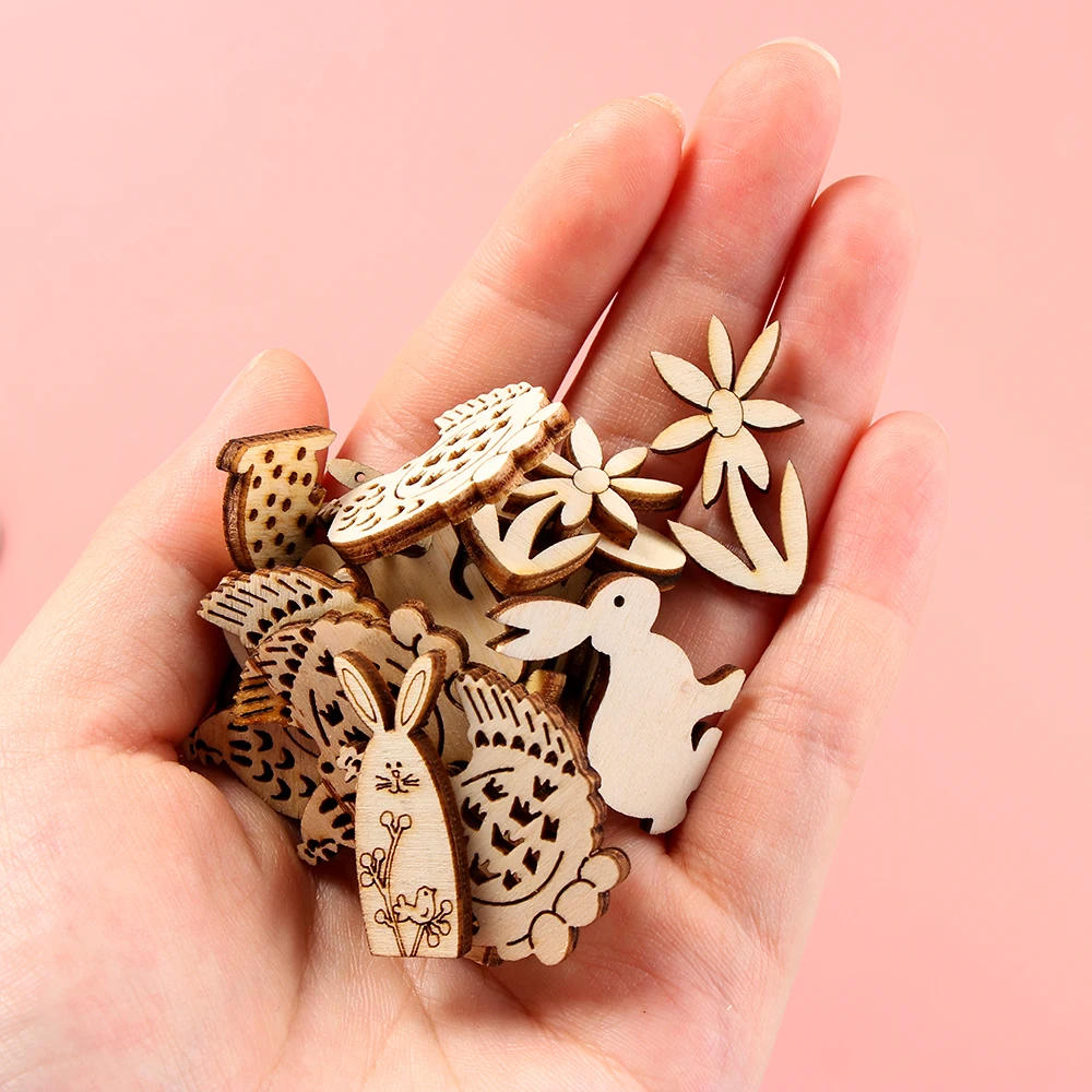 50 шт. пасхальные яйца кролика, деревянное ремесло, пасхальные украшения сделай сам, деревянные чипы, натуральные подвесные украшения (отправляются случайным образом)