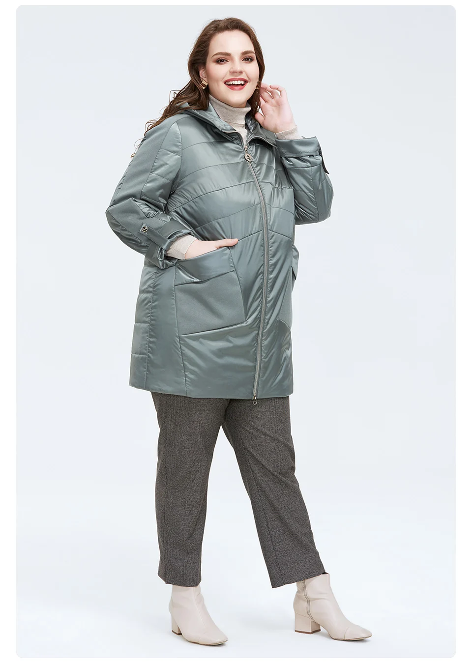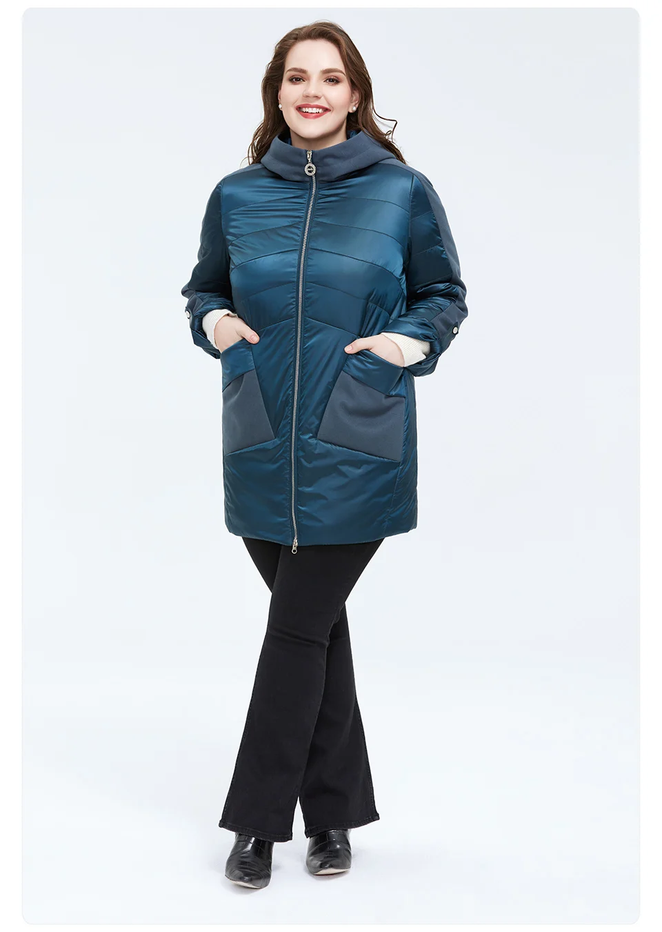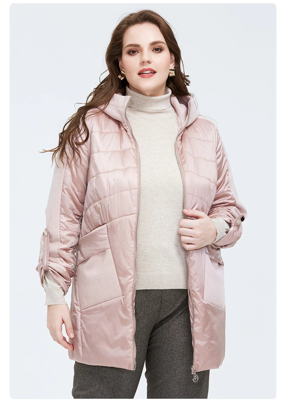 Куртка женская свободная, Астрид, теплая, тонкая, AM-2021, размера плюс