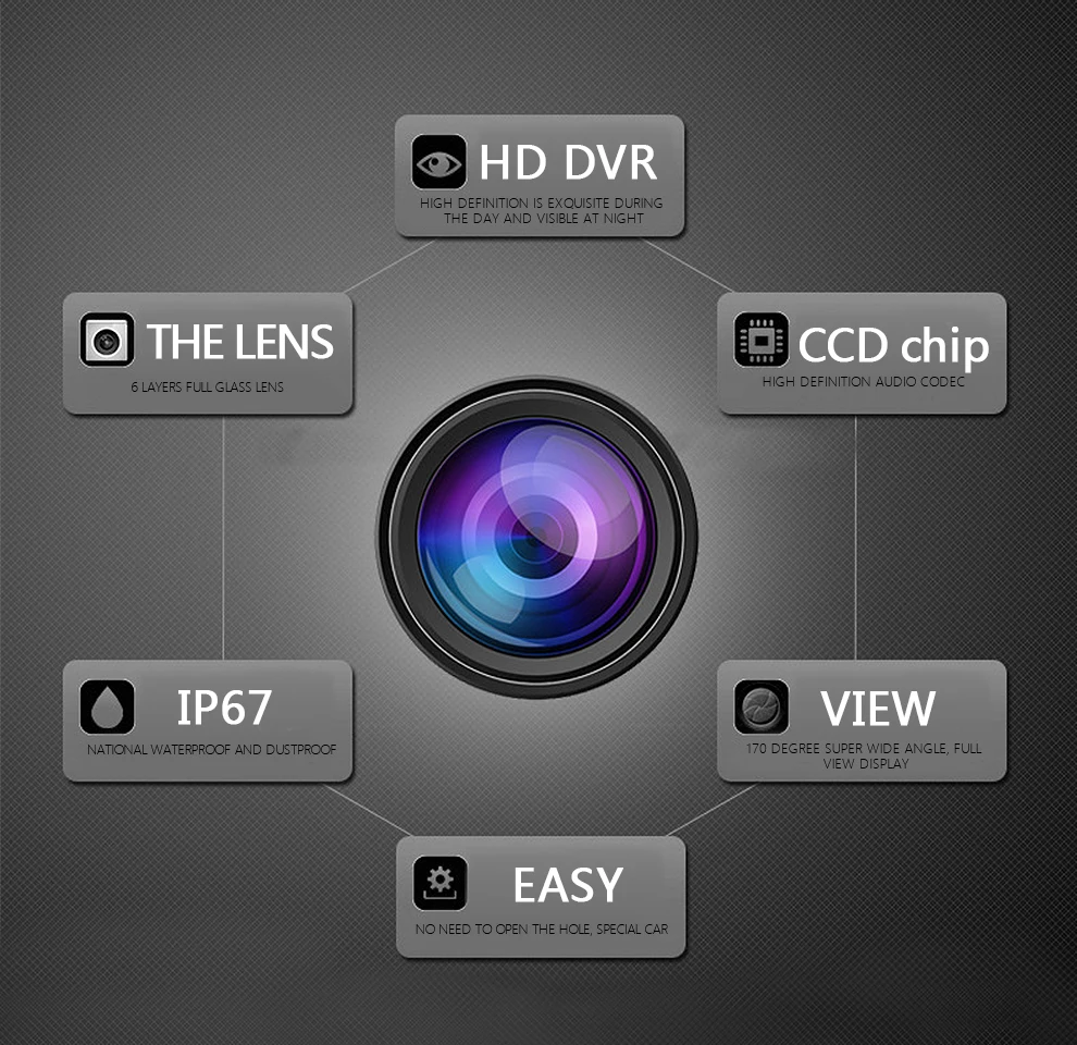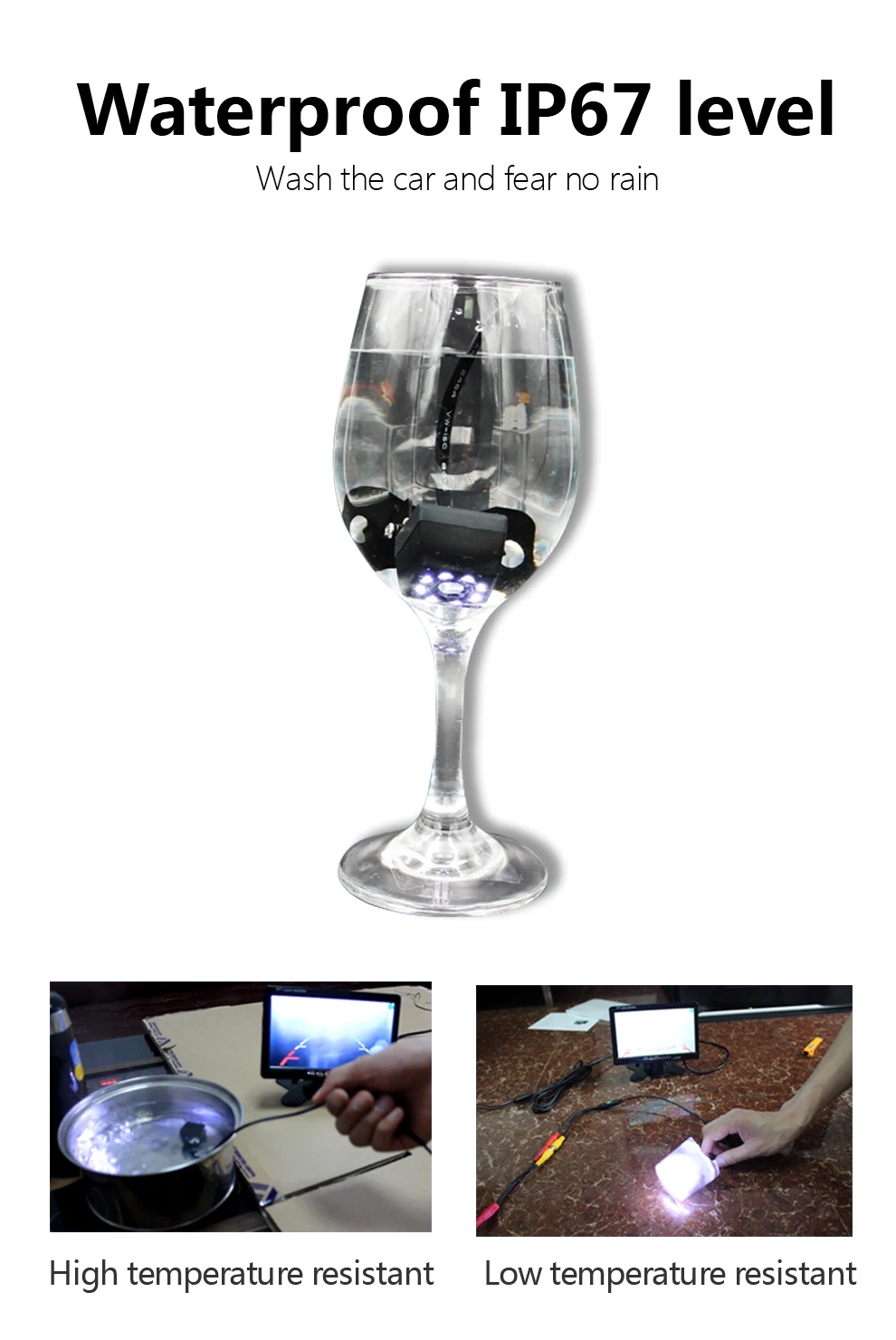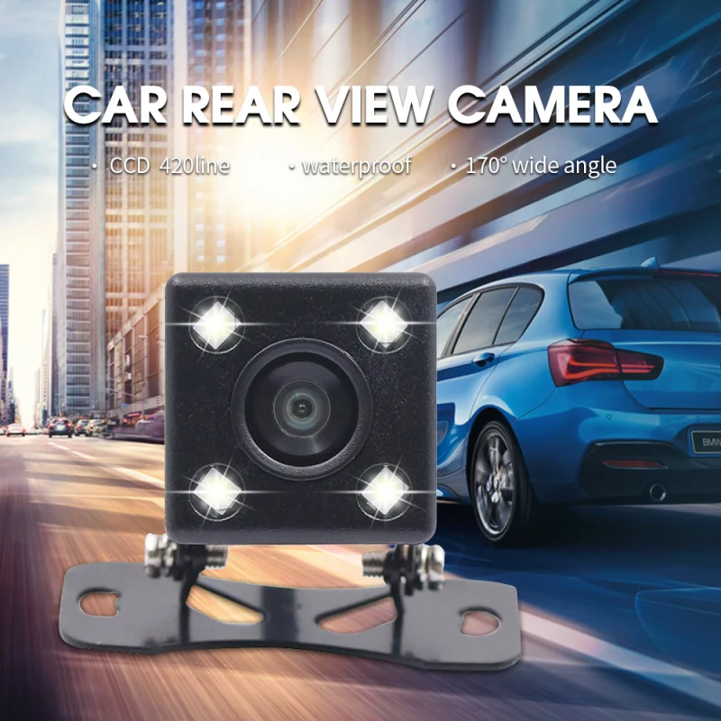 Камера заднего вида Hipppcron автомобильная, камера с зарядовой связью, 4 светодиодами, ночным видением, монитором для парковки задним ходом, водонепроницаемая камера с обзором 170 градусов и видеоформатом HD