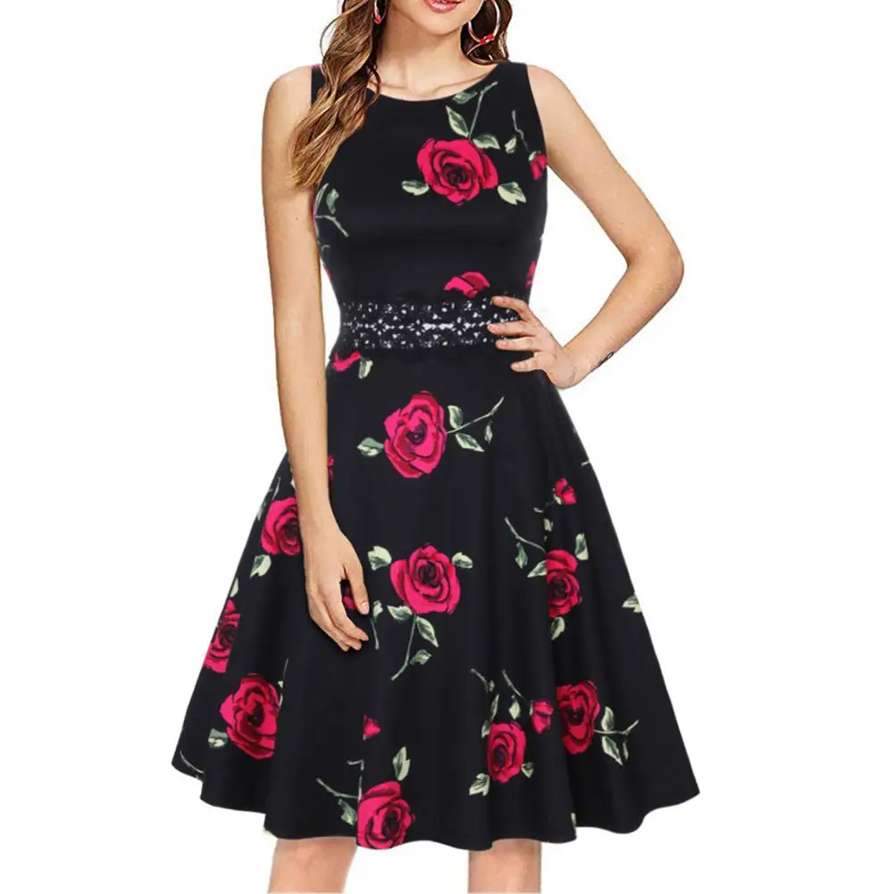 Элегантное женское банкетное платье с цветочным принтом, однотонное платье-миди без рукавов с завышенной талией, трапециевидного силуэта, для свадебной вечеринки