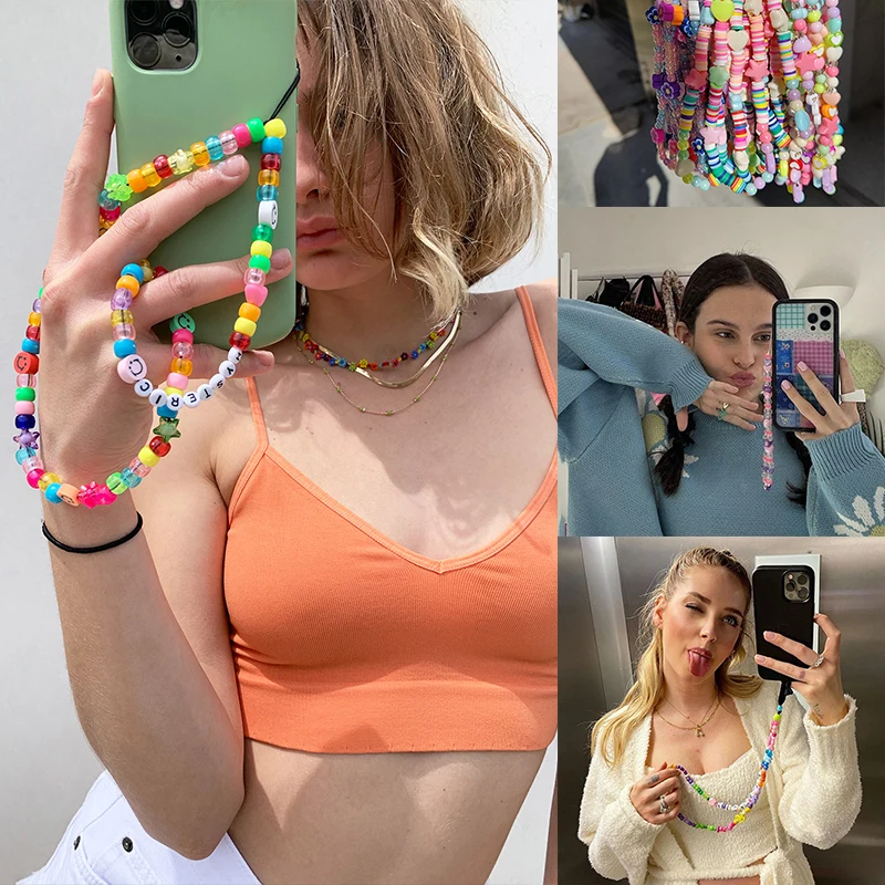 2021 популярный телефон Y2K цепочка из бисера ремешок на запястье с...