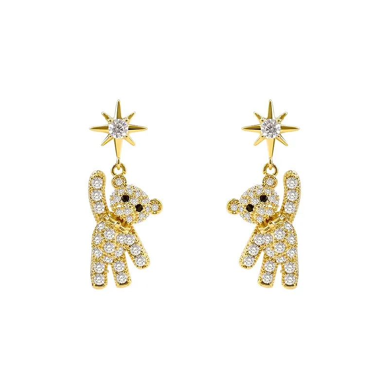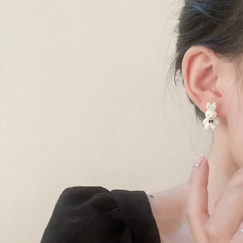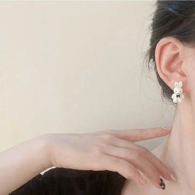 Новые корейские милые смешные плюшевые маленькие серьги-гвоздики с милым бантом медведем изящная серьга модные ювелирные изделия 2021 серьги оптовая продажа