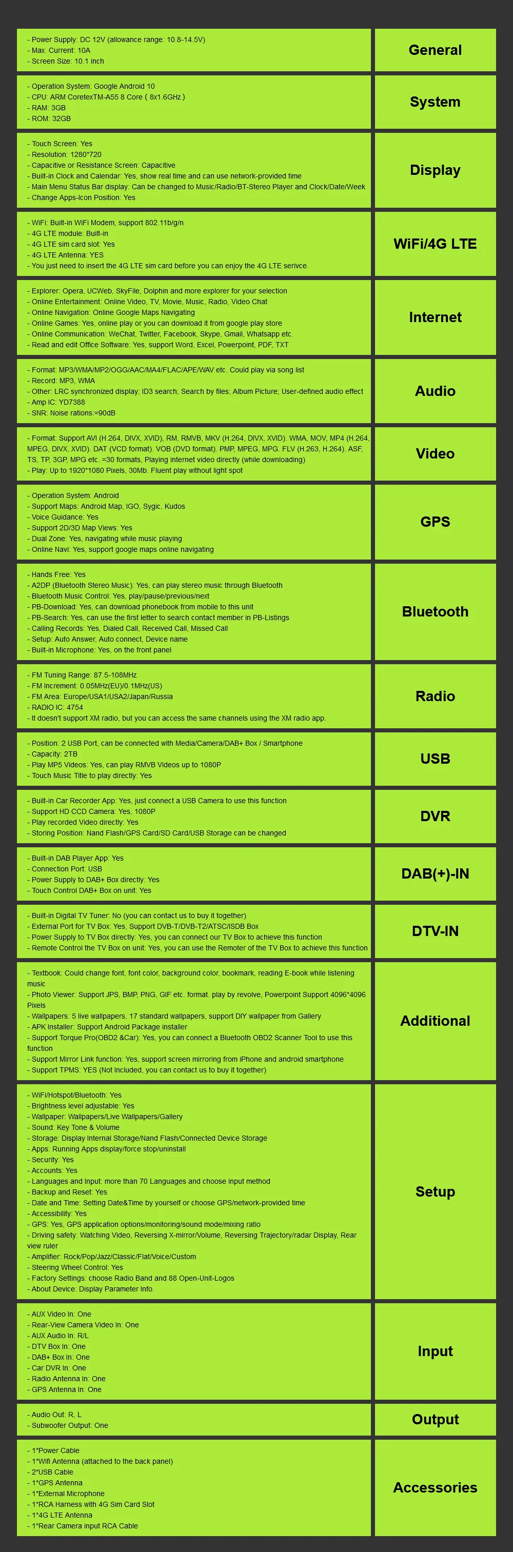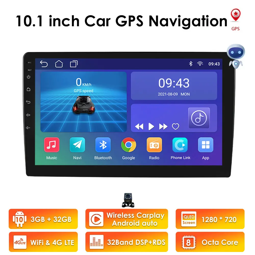 Автомобильный мультимедийный плеер 3G + 32G, плеер на Android 10, 8 ядер, с GPS, Wi-Fi, BT, SWC, RDS, DSP, Navi, 4G, LTE, USB, 10,1 дюйма, типоразмер 2 Din