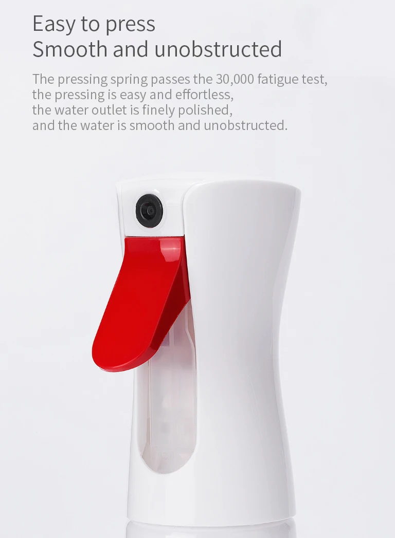 -В распылительной бутылке используется новый высококачественный экологически чистый ПЭТ-материал, который интегрирован с выдувным формованием.