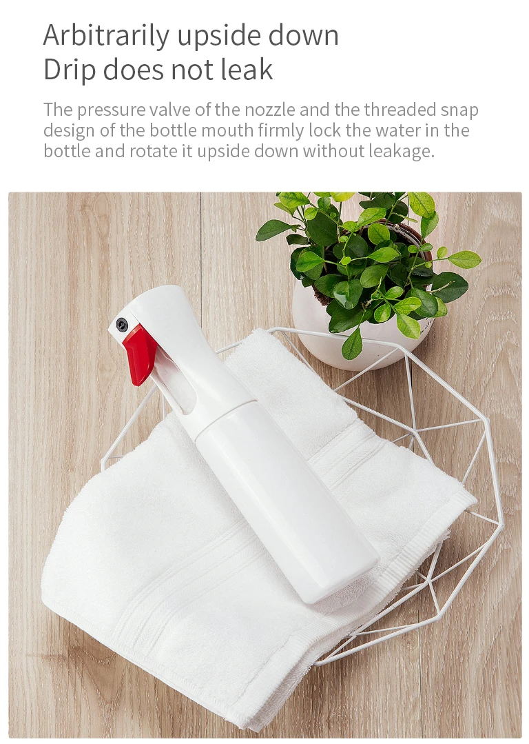 -Клапан давления сопла и резьбовой защелкивающийся дизайн рта бутылки надежно зафиксируют воду в бутылке иПоверните его вверх дном без утечки.-Выпускной насос имеет определенную емкость для хранения воды, нажмите на спусковой механизм в нижней части и после выпуска,Выпускной насос продолжает работать, продлевая время запотевания сопла.-Выходное отверстие имеет диаметр 0,3 мм, резиновый шланг высокого давления и узким открытым носком, форма расход воды, без давления воздуха,Большая площадь распыления и тонкая распыление.