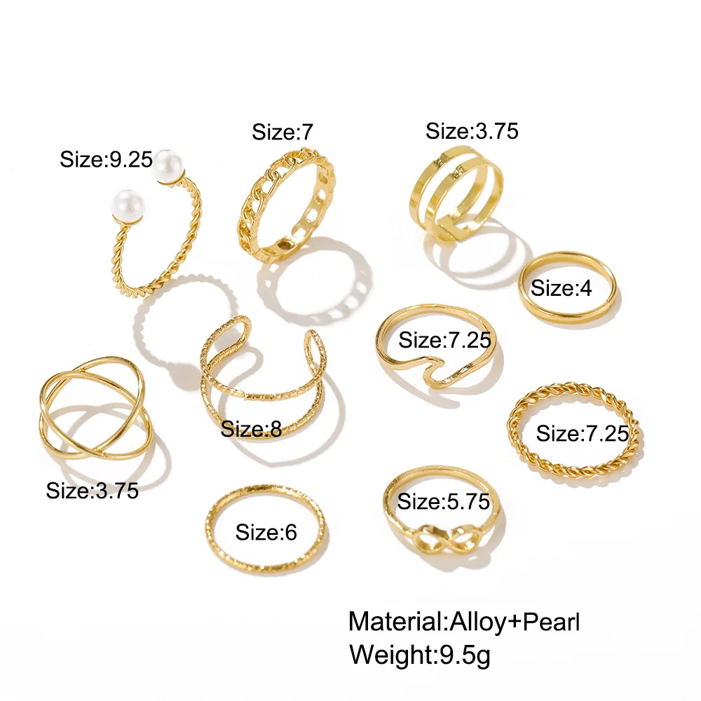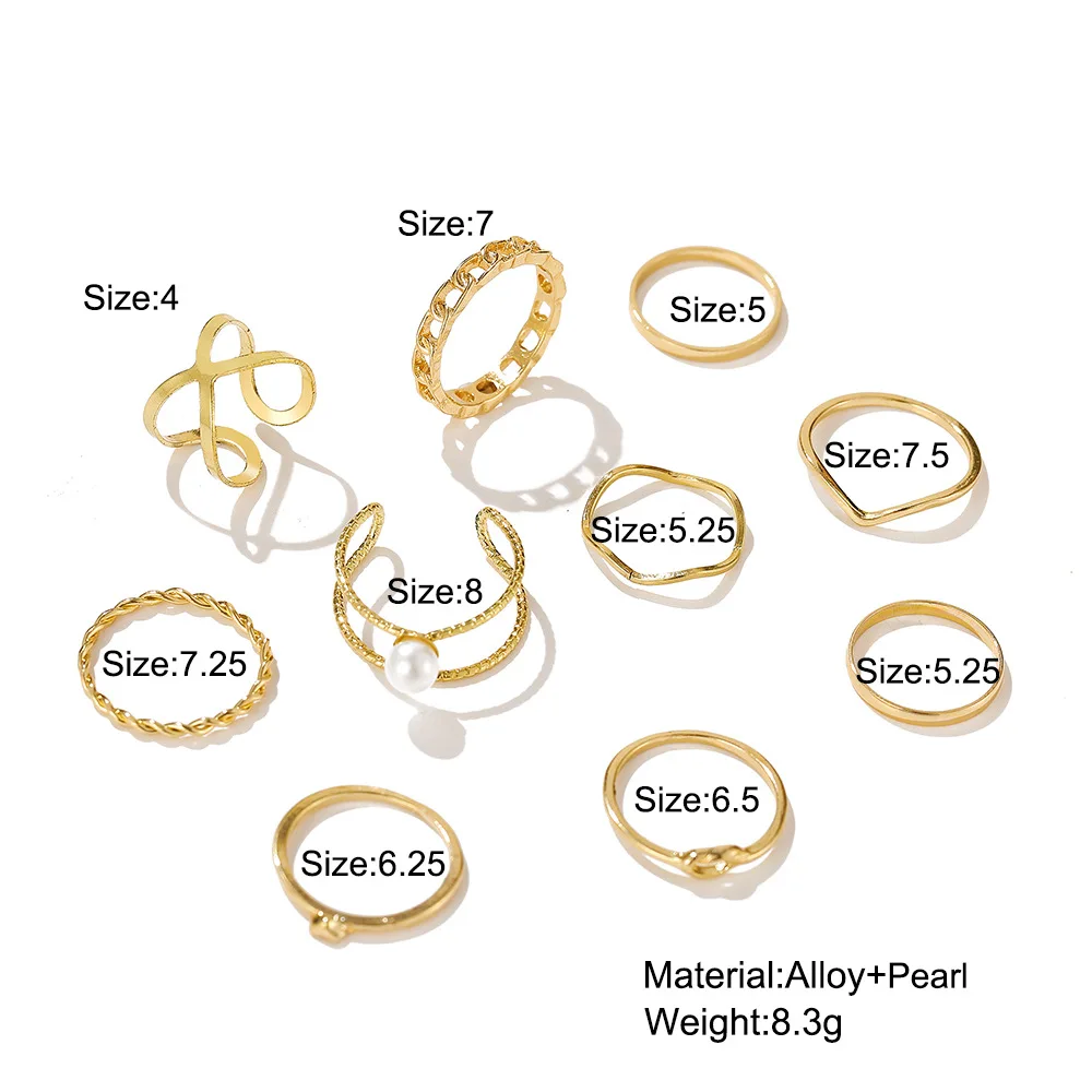 Набор колец из 10 частей с жемчугом и геометрическим рисунком, регу...