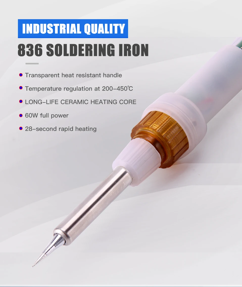 A-BF 836 Цифровой паяльник ЖК-дисплей с регулируемой температурой комплект с 3 наконечниками паяльника и 1 губкой бесплатно