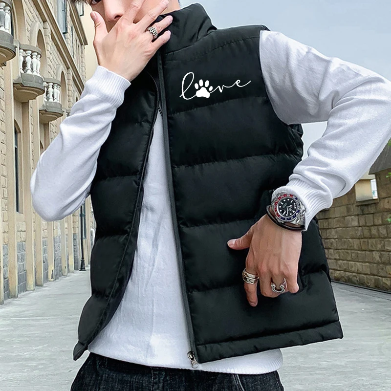 Осенне-зимний мужской жилет, теплый, с кошачьими когтями, с принтом, без рукавов, с высоким воротником, Повседневный, на молнии, Мужской Хлопковый жилет, размера плюс