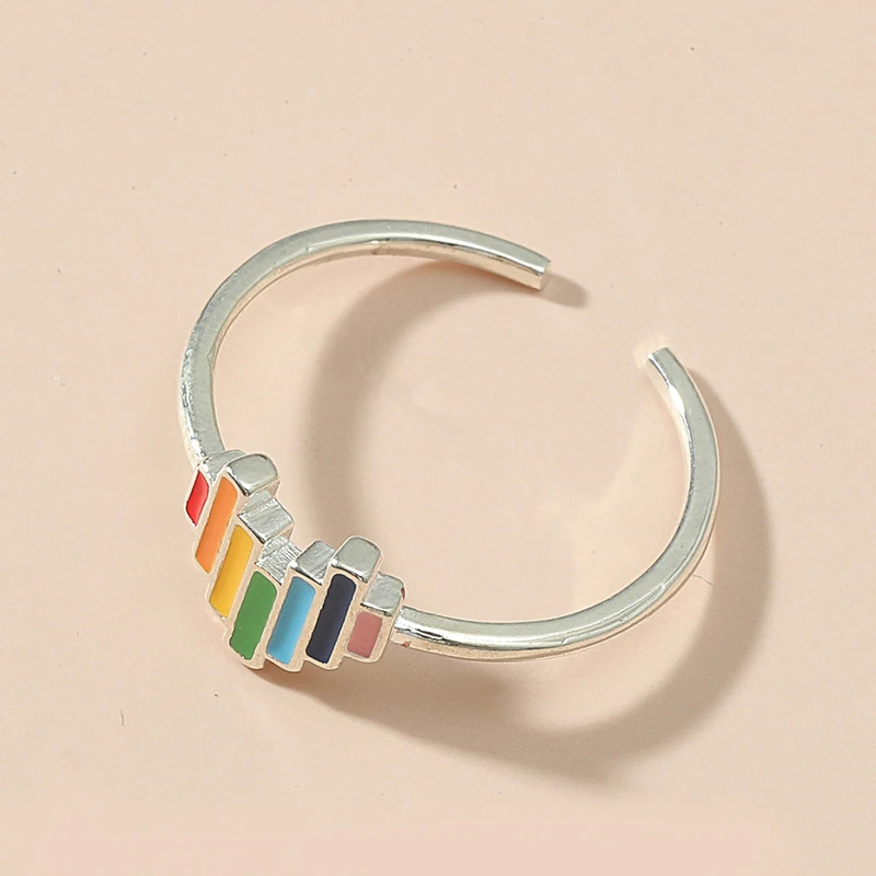Милое и милое регулируемое кольцо в форме сердца с радугой, модное свежее и простое ювелирное изделие, подарок для нее