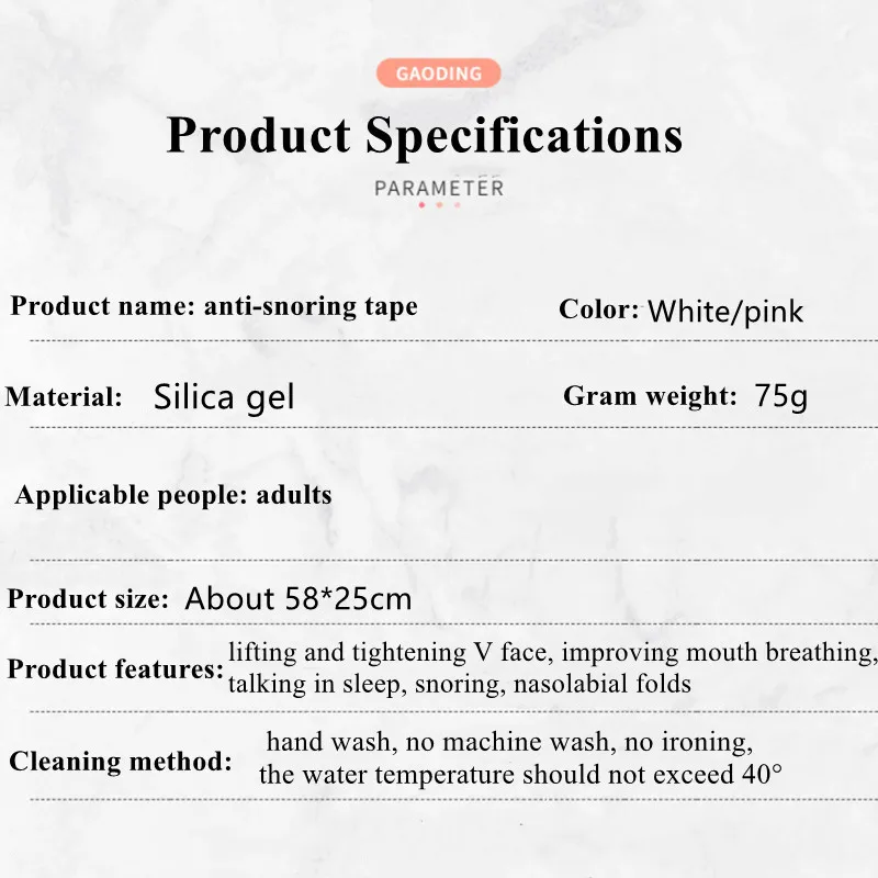 1,Ремень для защиты от храпа для подбородка предназначен для закрытия рта и предотвращения отпадов челюсти, помогая вернуться в нормальное место, которое, естественно, открывает дыхательные пути, чтобы помочь остановить храп.
